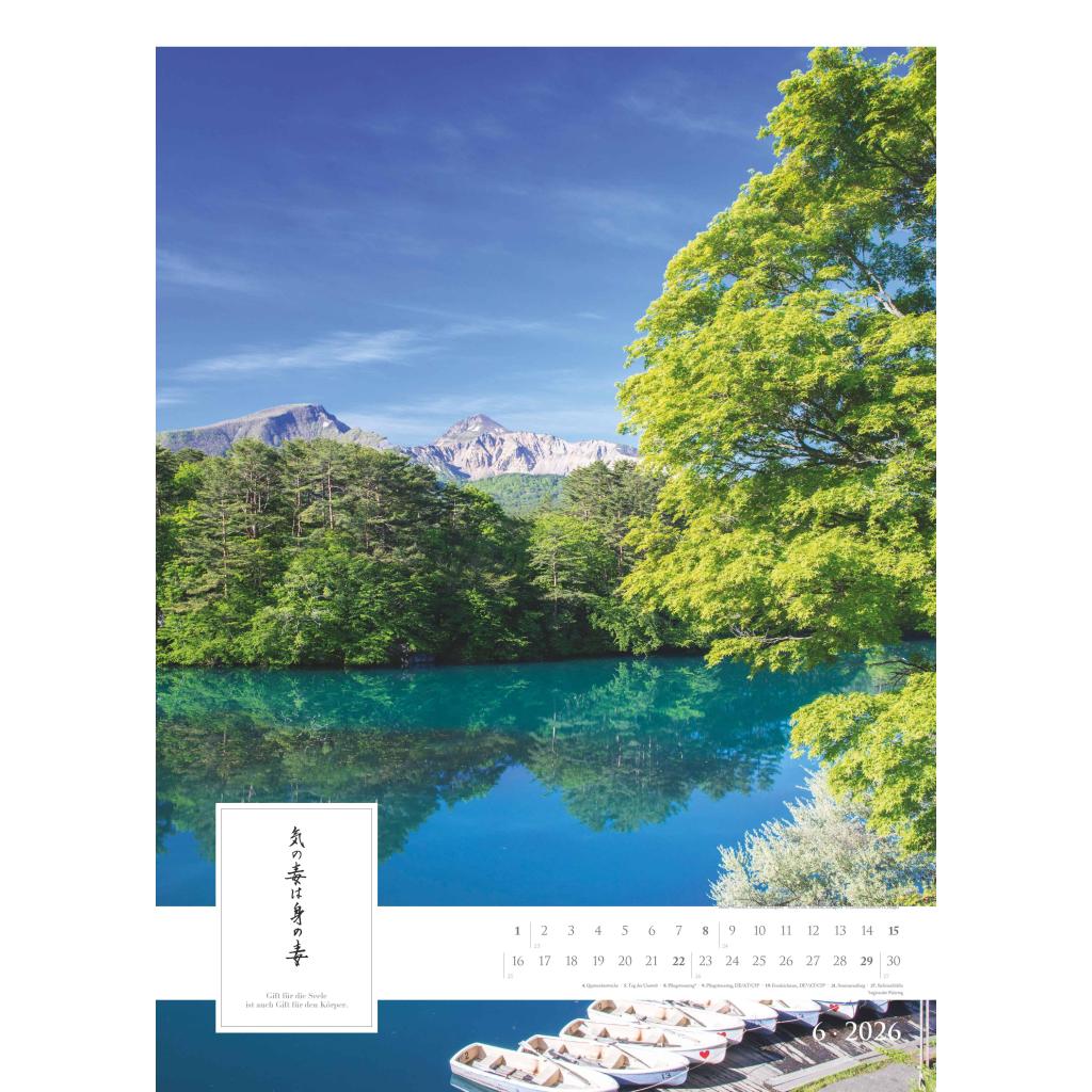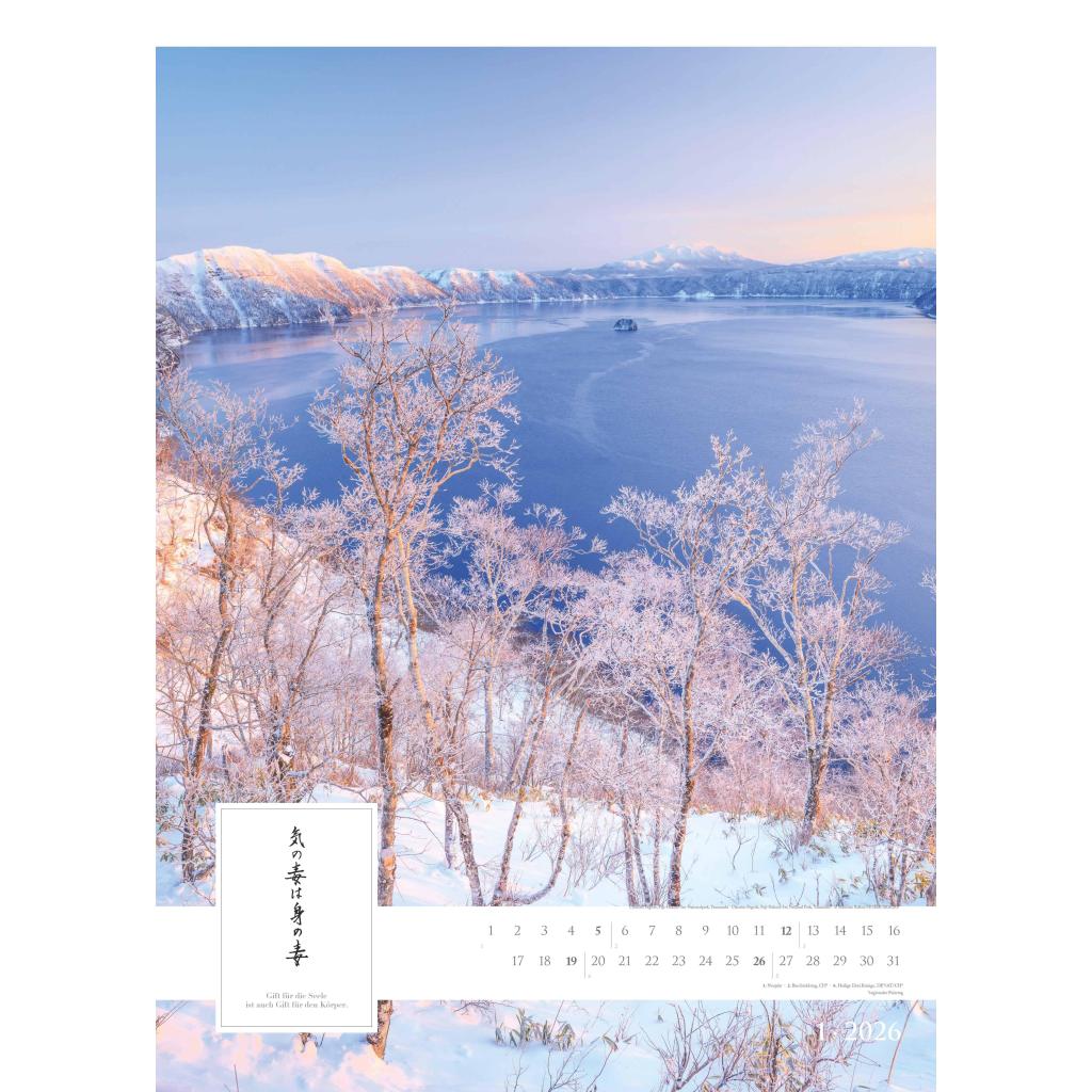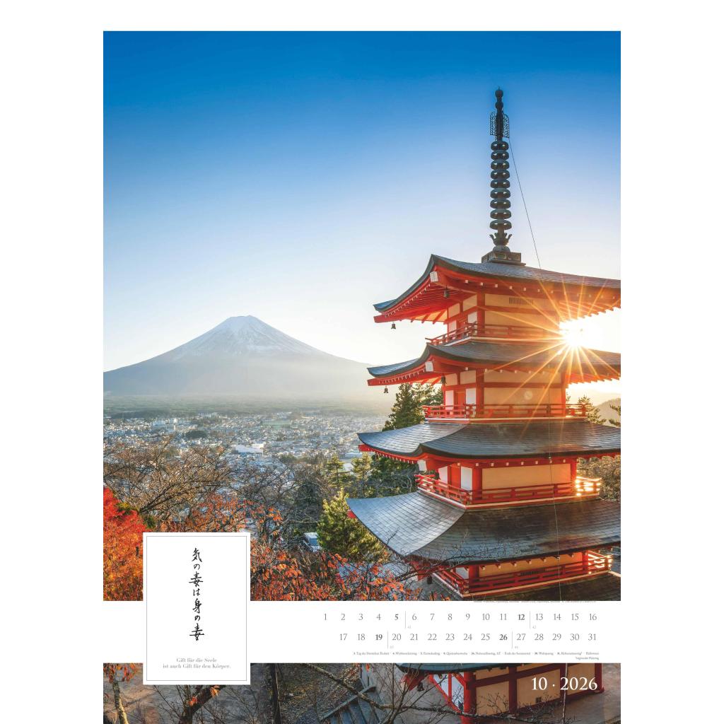 Der Spirit of Japan 2026 von Alpha Edition entführt Sie Monat für Monat in die faszinierende Welt Japans. Im großformatigen 50 x 70 cm Hochformat kommen beeindruckende Aufnahmen aus dem Land der Kirschblüten besonders gut zur Geltung – von stillen Tempelanlagen und buddhistischen Schreinen über traditionelle Pilgerwege bis hin zu atemberaubenden Naturlandschaften. Jedes Kalenderblatt wird von kunstvoll gestalteten japanischen Kalligraphien begleitet, die Weisheiten und Lebensphilosophien vermitteln. Das sprachneutrale Kalendarium mit übersichtlicher Gestaltung fügt sich harmonisch unter die Bildmotive und bietet Platz für Ihre Termine. Der Kalender wird auf FSC-zertifiziertem Papier aus nachhaltiger Forstwirtschaft in Deutschland hergestellt und überzeugt durch hochwertige Verarbeitung und Ringbindung. Highlights: - 12 brillante Fotografien aus Japan - Japanische Kalligraphie mit inspirierenden Weisheiten - Großformat 50 x 70 cm – ein echter Blickfang - FSC-zertifiziert, hergestellt in Deutschland - Ideal für Liebhaber fernöstlicher Kultur und Ästhetik Mit dem Wandkalender Spirit of Japan 2026 holen Sie sich ein Stück fernöstliche Schönheit und Gelassenheit in Ihr Zuhause.