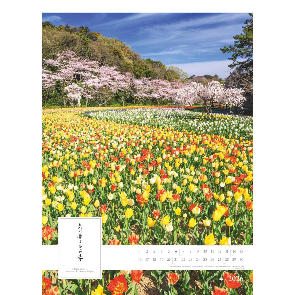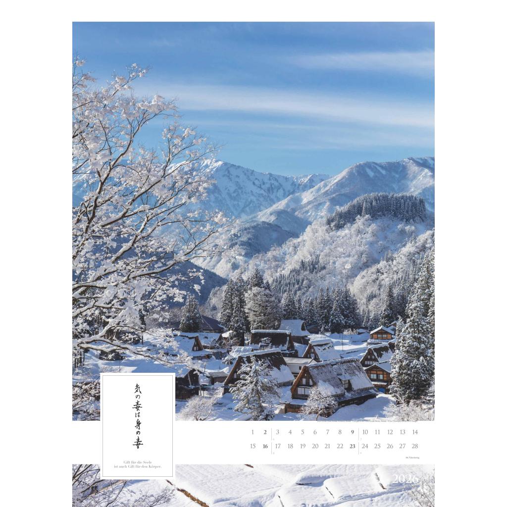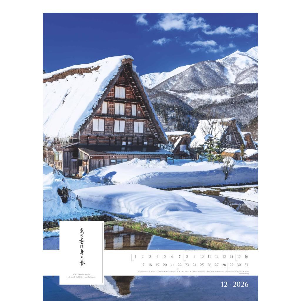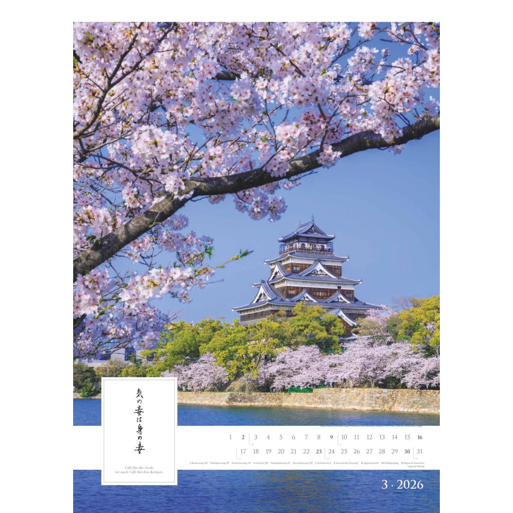 Der Spirit of Japan 2026 von Alpha Edition entführt Sie Monat für Monat in die faszinierende Welt Japans. Im großformatigen 50 x 70 cm Hochformat kommen beeindruckende Aufnahmen aus dem Land der Kirschblüten besonders gut zur Geltung – von stillen Tempelanlagen und buddhistischen Schreinen über traditionelle Pilgerwege bis hin zu atemberaubenden Naturlandschaften. Jedes Kalenderblatt wird von kunstvoll gestalteten japanischen Kalligraphien begleitet, die Weisheiten und Lebensphilosophien vermitteln. Das sprachneutrale Kalendarium mit übersichtlicher Gestaltung fügt sich harmonisch unter die Bildmotive und bietet Platz für Ihre Termine. Der Kalender wird auf FSC-zertifiziertem Papier aus nachhaltiger Forstwirtschaft in Deutschland hergestellt und überzeugt durch hochwertige Verarbeitung und Ringbindung. Highlights: - 12 brillante Fotografien aus Japan - Japanische Kalligraphie mit inspirierenden Weisheiten - Großformat 50 x 70 cm – ein echter Blickfang - FSC-zertifiziert, hergestellt in Deutschland - Ideal für Liebhaber fernöstlicher Kultur und Ästhetik Mit dem Wandkalender Spirit of Japan 2026 holen Sie sich ein Stück fernöstliche Schönheit und Gelassenheit in Ihr Zuhause.