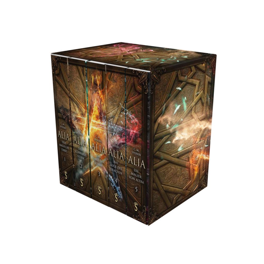 Alia beherrscht keines der vier Elemente. Jeder in Altra trägt Wasser, Feuer, Luft oder Erde in sich - sie nicht. Da sie demnach zu keiner angesehenen Arbeit taugt, wird sie an ihrem sechzehnten Geburtstag als Dienerin in den Magierzirkel von Lormir geschickt. Dort soll sie den Rest ihres Lebens verbringen. Einen Tag vor ihrer Abreise erfährt sie allerdings von ihrer Mutter ein Geheimnis, das ihr Leben verändern wird. Der Schuber enthält die kompletten fünf Taschenbücher der 'Alia'-Reihe.