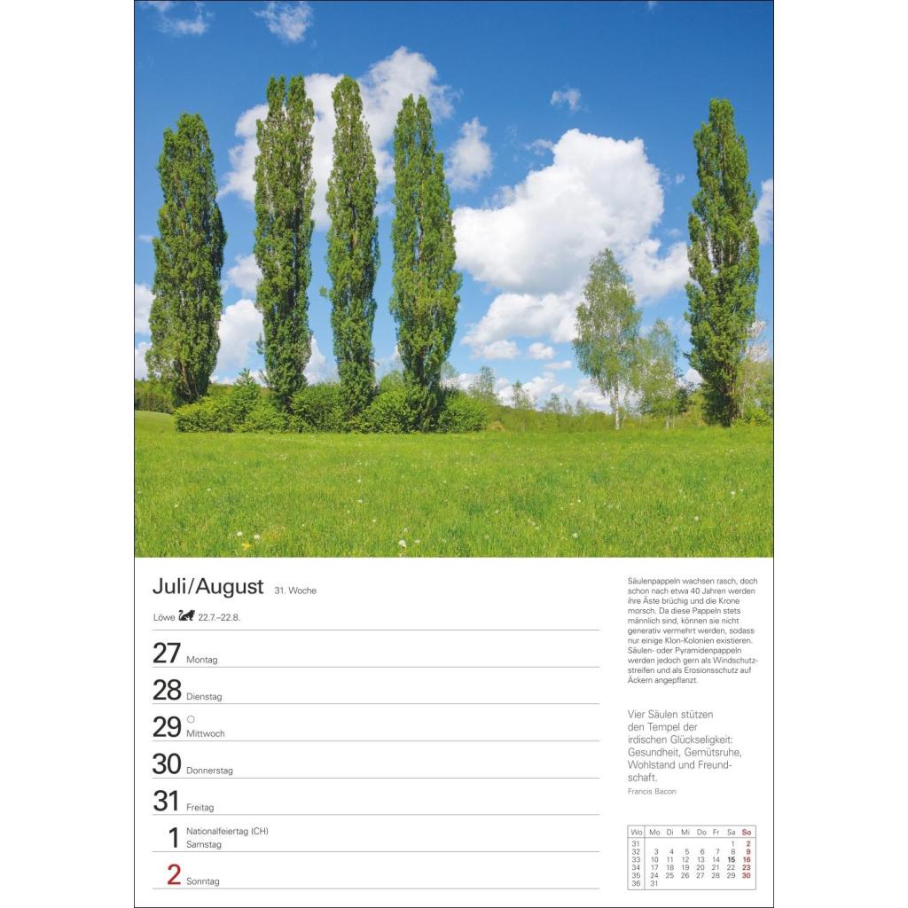 Faszinierende Baumfotos, Zitate und Kurztexte in einer Hommage an den Wald. Praktischer Wandplaner mit viel Raum für Notizen. Natur-Kalender 2026