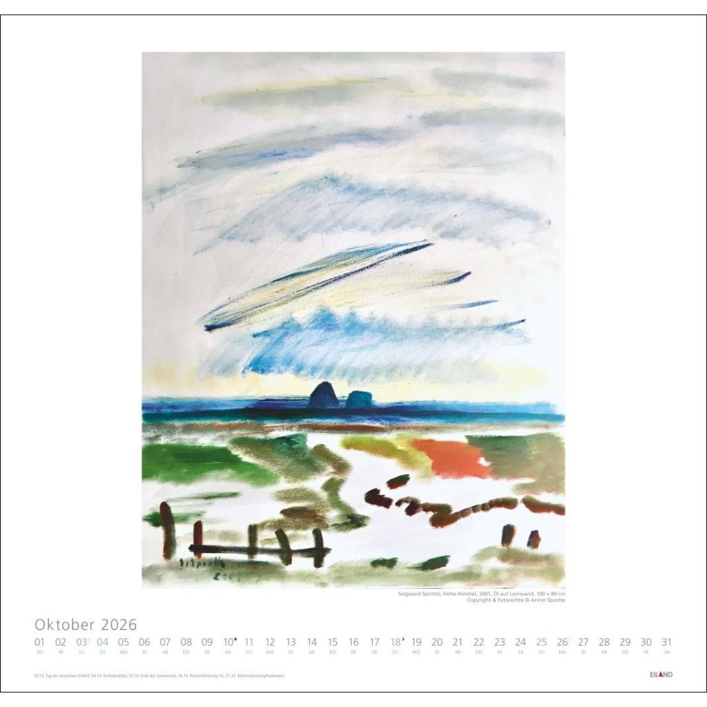 Siegward Sprottes Bilder in einem großen Wandkalender. Monatskalender für Kunstbegeisterte mit 12 hochwertigen Abbildungen im Querformat 48 x 46 cm