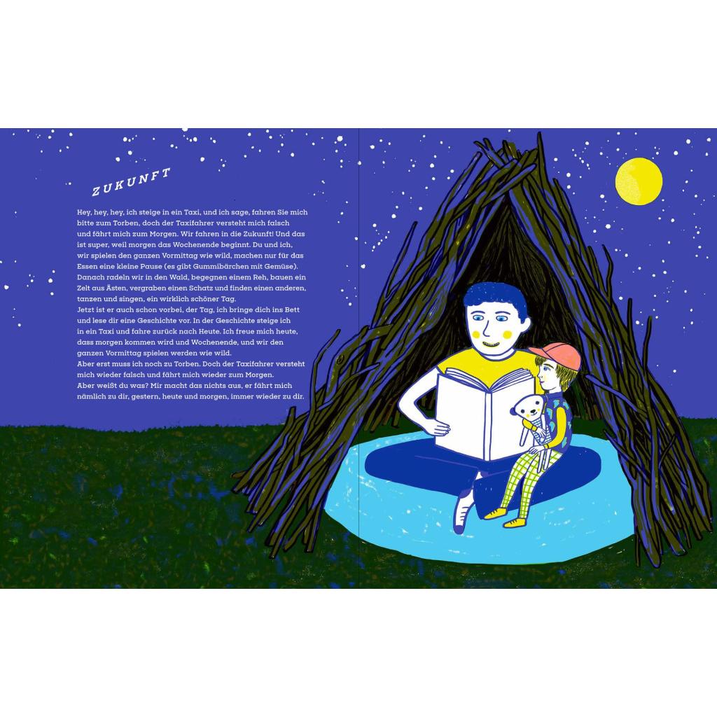 Ein Taxi ist für ein Kind ein magisches Vehikel. Ein Hexenbesen auf vier Rädern. Du steigst ein und das Taxi erfüllt dir deinen Reisewunsch. Was, wenn die Magie noch weiter reichte? Wenn Taxis Geschichten anlockten, phantastische und absurde Geschichten, lustige Geschichten, bevölkert von Mensch und Tier und Riese und Piratenkapitän mit vier Piratenkapitänsmützen? Wenn Taxis also Einfallstore wären für die Fantasie der Kinder? So ein Buch ist das hier: Eines, in dem ein Ich in ein Taxi steigt und damit eine Welt betritt, in der ganz eigene, unwahrscheinliche Gesetze herrschen. Die Reisen führen in alle Richtungen, nach nebenan und in die Zeit und ins All. Aber am Ende immer zurück nach Hause, zurück zum Kind. Saa Stanii¿ hat sein erstes Kinderbuch geschrieben - zusammen mit seinem Sohn! Gemeinsam haben sie sich die wildesten, verrücktesten, sprudelstenden Abenteuer ausgedacht, die man im Taxi so erleben kann. Die Illustratorin Katja Spitzer hat das Ganze mit Liebe zum Detail illustriert und die Figuren zum Leben erweckt. Ein großer Spaß - als Vorlesegeschichten vorm Einschlafen fast schon zu aufregend!