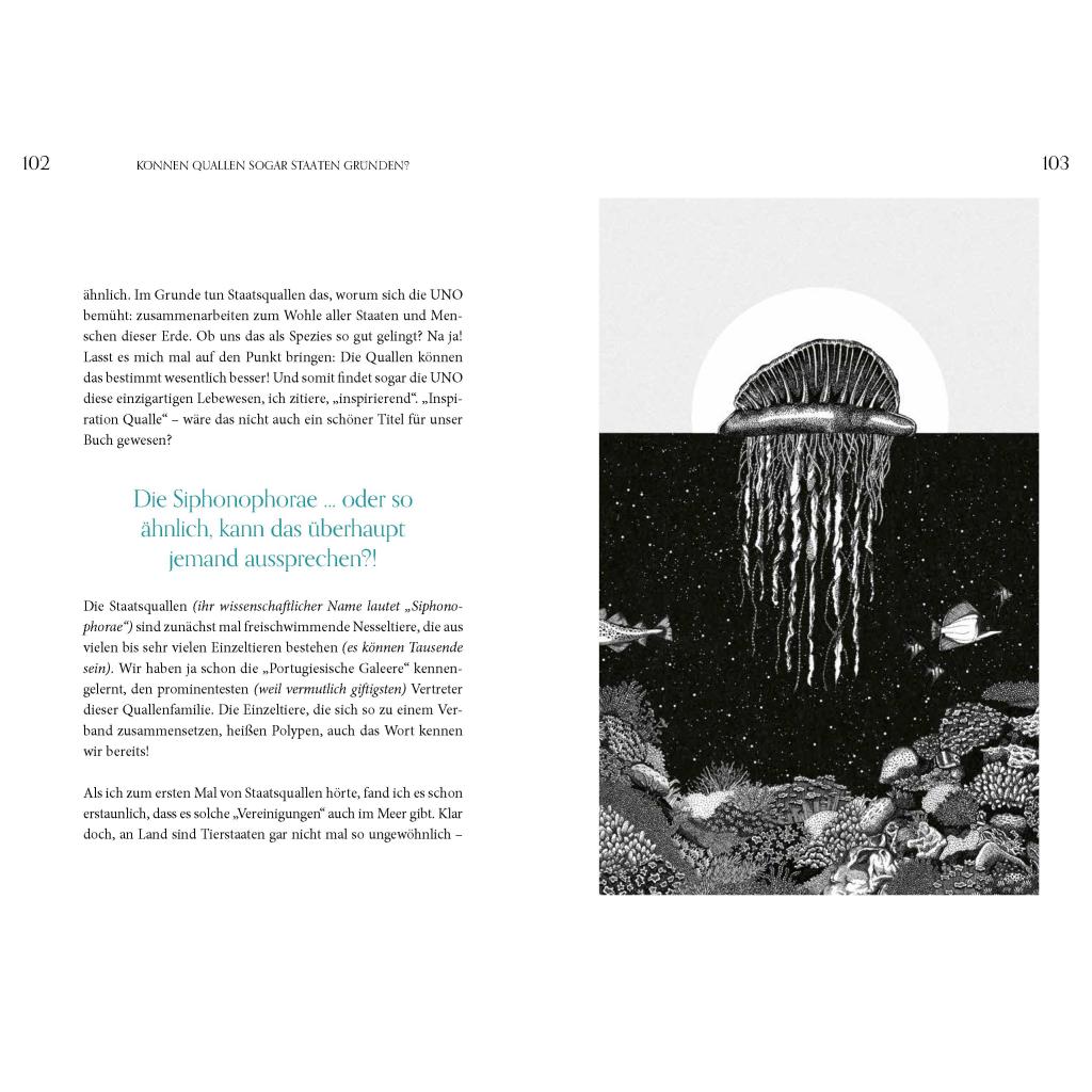 Die geheimnisvolle Welt der Quallen. Ein Buch über die unentdeckten Weiten des Ozeans und die Wunder der Wissenschaft. Mit Suchbildern, Stereogram und einem Quallisch-Kurs für Anfänger:innen. Was machen Quallen im Weltraum? Haben Quallen Superkräfte? Was sind eigentlich Medusen - und was hat eine Qualle bitte mit Unsterblichkeit zu tun? Unendliche Weiten, unendlich viel Wissen warten auf euch, schließlich sind gerade mal 5% des Ozeans erforscht. Michael Stavari¿ und Michèle Ganser nehmen euch mit auf Entdeckungsreise, diesmal auf der Spur eines der ältesten und gefährlichsten Wesen der Meere. Dass ihr ganz nebenbei euch noch so einiges über die Schwerkraft, Staatenbildung und die giftigsten Tiere der Welt erfahrt, ist wie immer pure Nebensache. Mit allerlei Zusatzinfos für Schlauköpfe, Witzen, Gedichten und Mitmachaufgaben. Streckt eure Tentakel aus und begebt euch in das unendliche Reich der Wissenschaft! Ein Buch zum Staunen, das die Lust an Wissenschaft entfacht: mit Mitmachaufgaben, Witzen und einem Quallisch-Kurs für Anfänger:innen. Den Wundern des Ozeans und noch viel mehr auf der Spur: Band 2 des erfolgreichen und mehrfach prämierten Vorgängers 'Faszination Krake'.