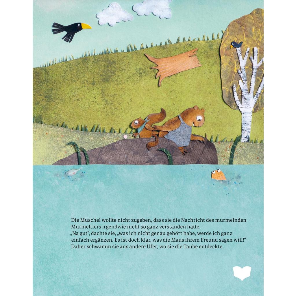 Bär und Maus sind beste Freunde. Eines schönen Tages aber streiten sie sich fürchterlich. Aus lauter Wut, weil der Bär einfach zornig nach Hause gegangen ist, lässt die Maus ihm ausrichten, dass sie ihn nie wieder sehen will! Doch die Nachricht, die bis zur Bärenhöhle am Berggipfel überbracht werden sollte, kommt, weitergenuschelt und -gemurmelt, schließlich so ganz anders an als geplant. Was für ein Glück für Maus und Bär! Inzwischen tut es den zerstrittenen Freunden nämlich ganz schrecklich leid und sie vermissen sich sehr. Der Versöhnung steht nichts mehr im Weg. Wer das Spiel "Stille Post" kennt, ahnt schon, dass in dieser Geschichte nicht alles nach Plan läuft. Doch manchmal ist es gut, wenn das Schicksal oder -¿wie hier - eine genuschelte, verdrehte Botschaft dazwischenfunkt. Rebekka Stelbrink hat zur Geschichte von Andrea Tuschka mit Pinsel, Schere und Papier farbenfrohe, filigrane Collagen der Waldbewohner erschaffen, die in dreidimensionale Welten eintauchen lassen.
