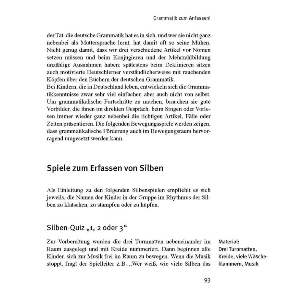| Fachschema: | Sprache / Pädagogik~Vorschulerziehung - Vorschulpädagogik~Pädagogik / Kindergarten, Vorschulalter~Spiel / Kinderspiele~Sport / Kindersachbuch, Jugendsachbuch~Deutsch / Didaktik, Methodik~Kinder- u. Jugendliteratur / Beschäftigungsbuch |