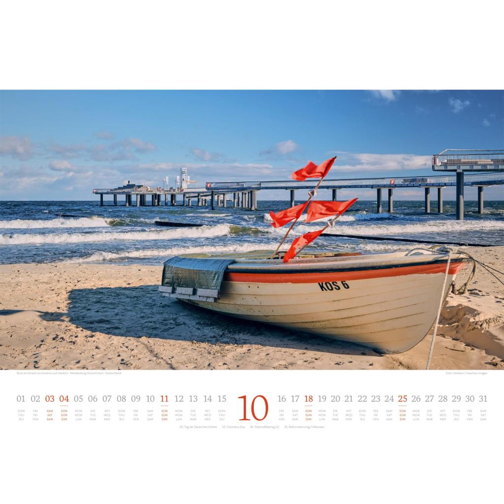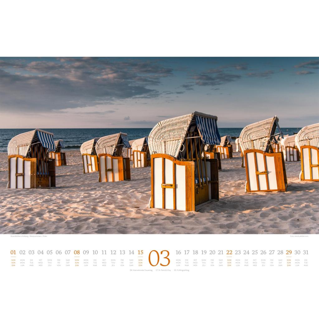 Stilsicherer Küsten-Kalender im Querformat (45x33 cm) | Strände der Ostsee und Nordsee in Deutschland
