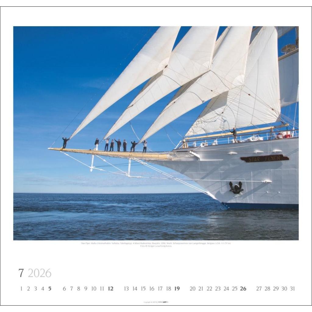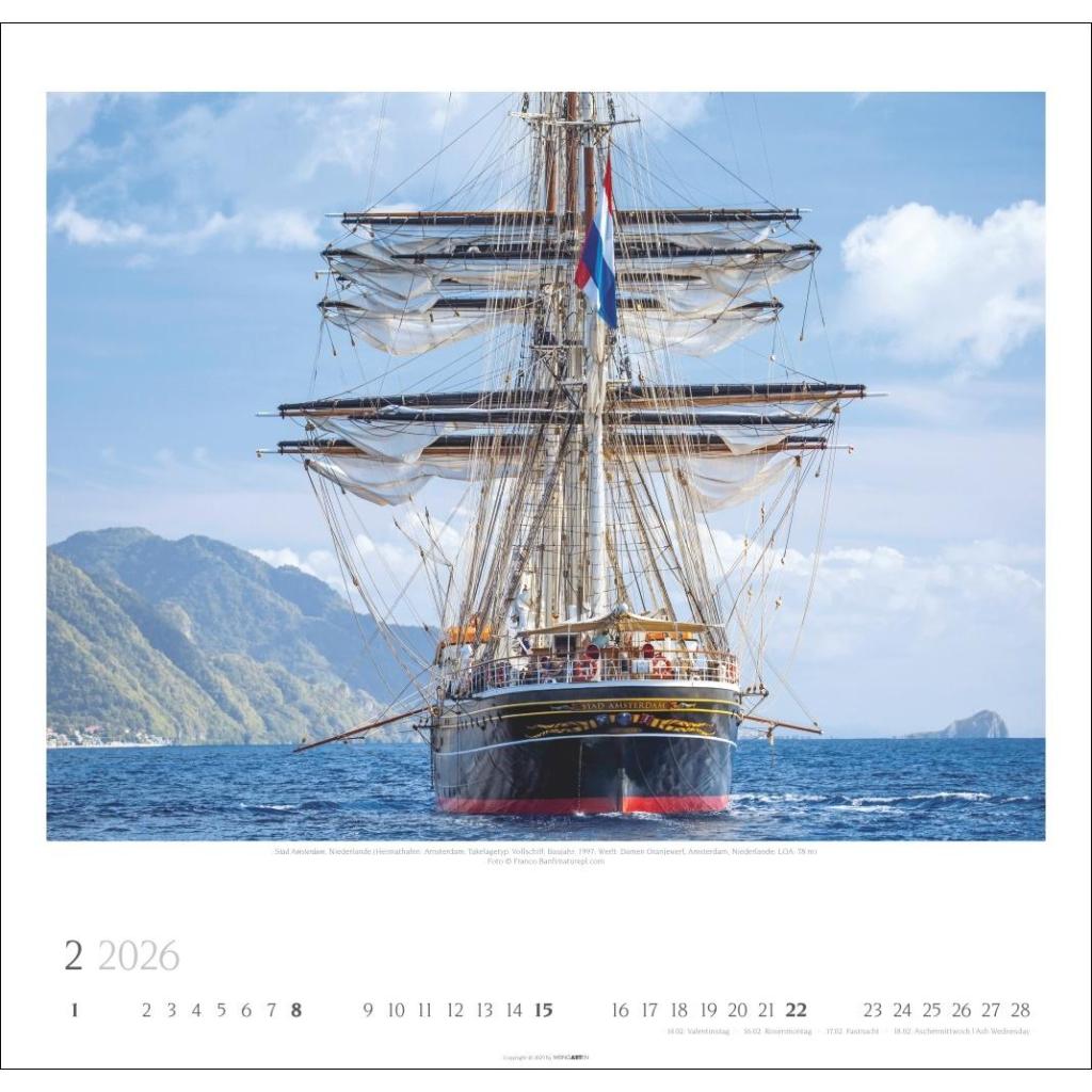 Großartige Fotos majestätischer Segelschiffe in einem großen Wandkalender. Das Querformat bringt die Windjammer in diesem großen Kalender perfekt zur Geltung.