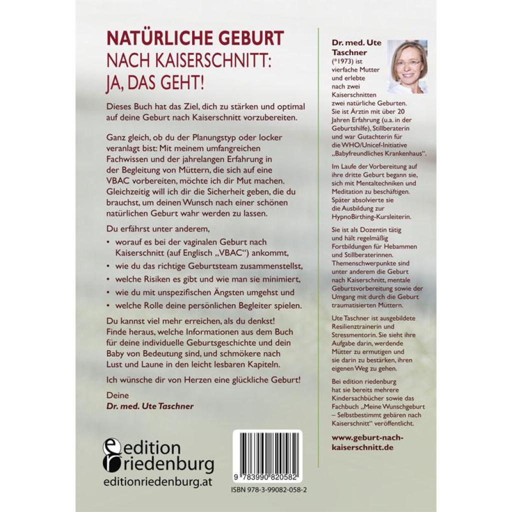 Natürliche Geburt nach Kaiserschnitt: Ja, das geht! Dieses Buch hat das Ziel, dich zu stärken und optimal auf deine Geburt nach Kaiserschnitt vorzubereiten. Ganz gleich, ob du der Planungstyp oder locker veranlagt bist: Mit meinem umfangreichen Fachwissen und der jahrelangen Erfahrung in der Begleitung von Müttern, die sich auf eine VBAC vorbereiten, möchte ich dir Mut machen. Gleichzeitig will ich dir die Sicherheit geben, die du brauchst, um deinen Wunsch nach einer schönen natürlichen Geburt wahr werden zu lassen. Du erfährst unter anderem, * worauf es bei der vaginalen Geburt nach Kaiserschnitt (auf Englisch "VBAC") ankommt, * wie du das richtige Geburtsteam zusammenstellst, * welche Risiken es gibt und wie man sie minimiert, * wie du mit unspezifischen Ängsten umgehst und * welche Rolle deine persönlichen Begleiter spielen. Du kannst viel mehr erreichen, als du denkst! Finde heraus, welche Informationen aus dem Buch für deine individuelle Geburtsgeschichte und dein Baby von Bedeutung sind, und schmökere nach Lust und Laune in den leicht lesbaren Kapiteln. Ich wünsche dir von Herzen eine glückliche Geburt! Deine Dr. med. Ute Taschner *** Aus dem Inhalt: Wie geht es dir und wo stehst du gerade? Die Gründe für deinen Kaiserschnitt verstehen Die Verarbeitung deiner Geburt Medizinische Voraussetzungen bei der natürlichen Geburt nach Kaiserschnitt Die Schwangerschaft nach einem Kaiserschnitt Wie kann ich mich optimal auf meine VBAC vorbereiten? Die nächste Geburt in der Praxis So geht's auch: Kaiserschnitt und trotzdem ein schönes Geburtserlebnis Für Lebenspartner und andere persönliche Begleiter Checklisten Fragebögen zur Reflexion *** Ein Buch vom Sachbuchverlag edition riedenburg, Salzburg * editionriedenburg.at * *** Von derselben Autorin bei edition riedenburg erschienen: * Meine Wunschgeburt - Selbstbestimmt gebären nach Kaiserschnitt * Mamas Bauch wird kugelrund * Ein Baby in unserer Mitte * Unsere kleine Schwester Nina
