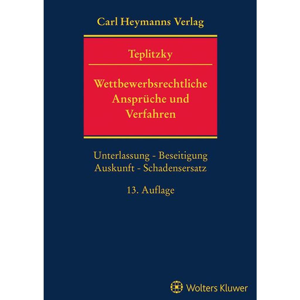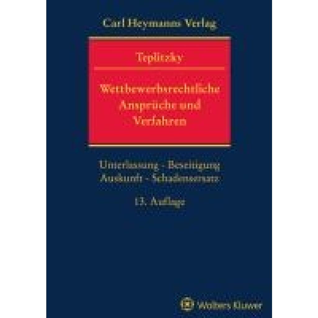 Teplitzkys systematische Darstellung der zum Wettbewerbsrecht und zum gewerblichen Rechtsschutz gehörenden Ansprüche und der ihrer Durchsetzung und Abwehr dienenden Verfahren hat in Praxis und Wissenschaft höchste Anerkennung gefunden. Sie ist mittlerweile zum Standardwerk ersten Ranges geworden. NEU in der 13. Auflage Die Neuauflage 2023 berücksichtigt mit Stand vom 31.03.2023 wieder sämtliche einschlägigen Kommentierungen, das gesamte in Betracht kommende übrige Schrifttum und vor allem die große Zahl neuer Entscheidungen des BGH und der Instanzrechtsprechung. Schwerpunkte der (natürlich aber das gesamte Werk erfassenden) Neubearbeitung liegen wieder in den Bereichen der Abmahnung und Unterwerfung, im Schadensersatzrecht unter dem Einfluss der Durchsetzungsrichtlinie sowie im Verfahrensrecht, hier besonders bei der einstweiligen Verfügung einschließlich des Abschlussverfahrens und bei verschiedenen Verfahrensfragen der Unterlassungs- , Feststellungs- und Auskunftsklage