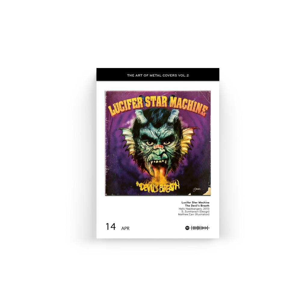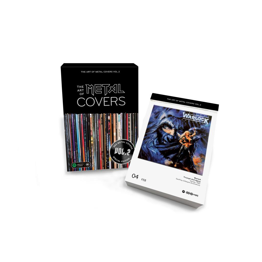 Nach dem großen Erfolg von Metal Covers Volume 1 erscheint jetzt endlich die zweite Auflage! Der neue immerwährende Kalender präsentiert in Volume 2 weitere 365 legendäre Metal Cover aus über 40 Jahren und ist somit ein einmaliges "Must-have" für jeden Anhänger von Heavy Metal, Death metal, Doom Metal, Speed Metal, Black Metal, Hard Rock, Progressive Metal, Power Metal, Hardcore, Glam Metal, Stoner Rock, Modern Metal. Und natürlich für Freunde illustrativer Fantasykunst. Ein Hör- und Augenschmaus der besonderern Art. Und der Hit: mit den abgedruckten SPOTIFY Codes kann jedes Album überall und sofort abgespielt werden.
