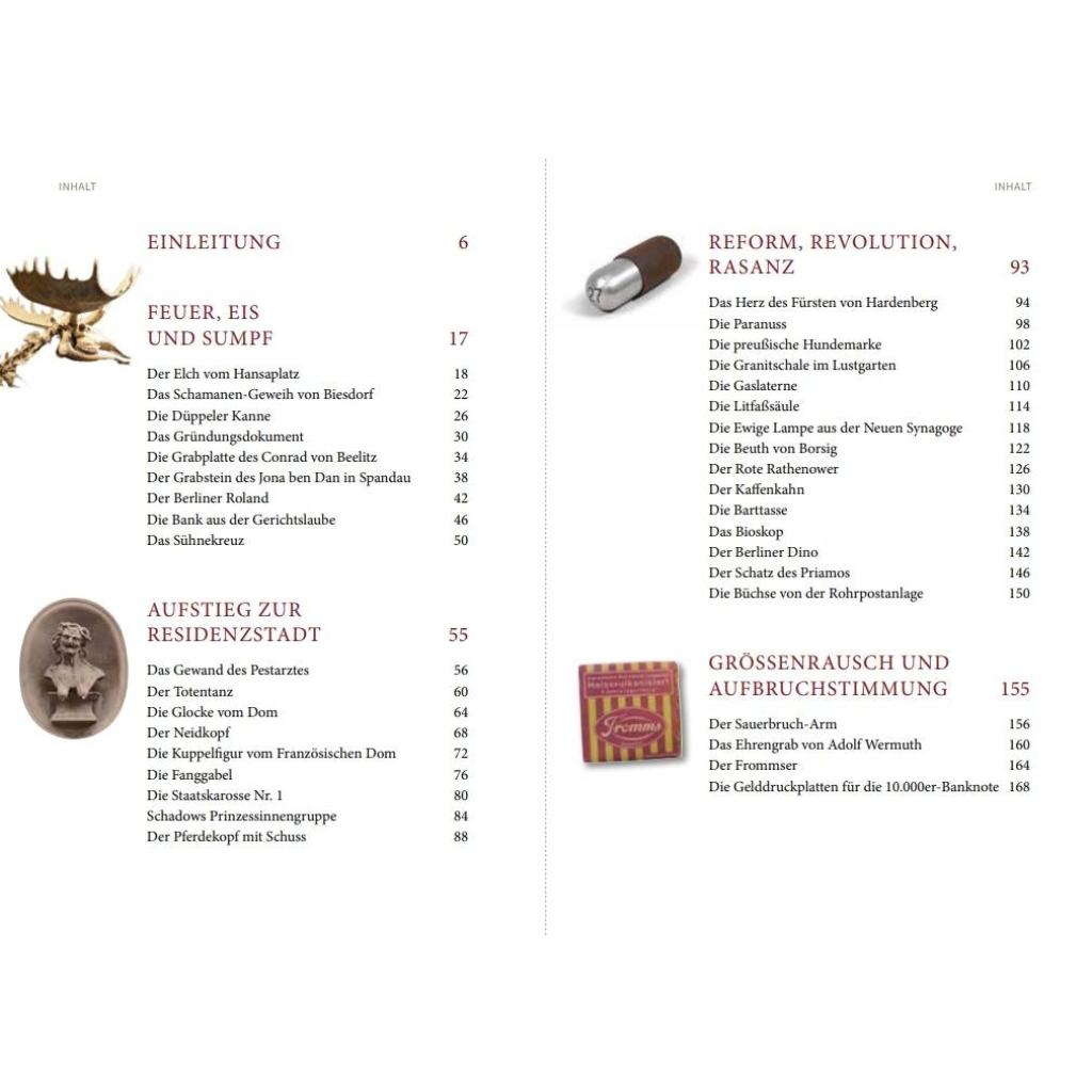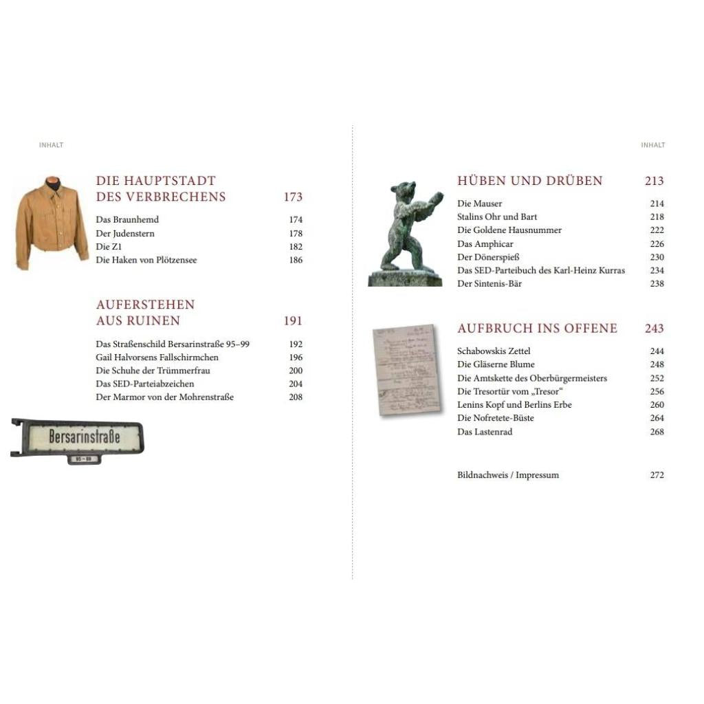 Maritta Tkalec, eine der besten Kennerinnen der Vergangenheit Berlins, erzählt in diesem Buch die wechselvolle Geschichte der Stadt anhand von 60 Objekten, die für ihre jeweilige Zeit stehen. Dabei spannt sie einen Bogen vom berühmten Elch vom Hansaplatz bis hin zu einem Lastenrad unserer Tage. Vorgestellt werden unter anderem auch die Ewige Lampe aus der Neuen Synagoge, eine Rohrpostbüchse aus dem Jahr 1900, die Kondome aus der Fabrik von Julius Fromm, ein Braunhemd aus Berliner Produktion, die Gläserne Blume aus dem Palast der Republik und Günter Schabowskis legendärer Zettel.
