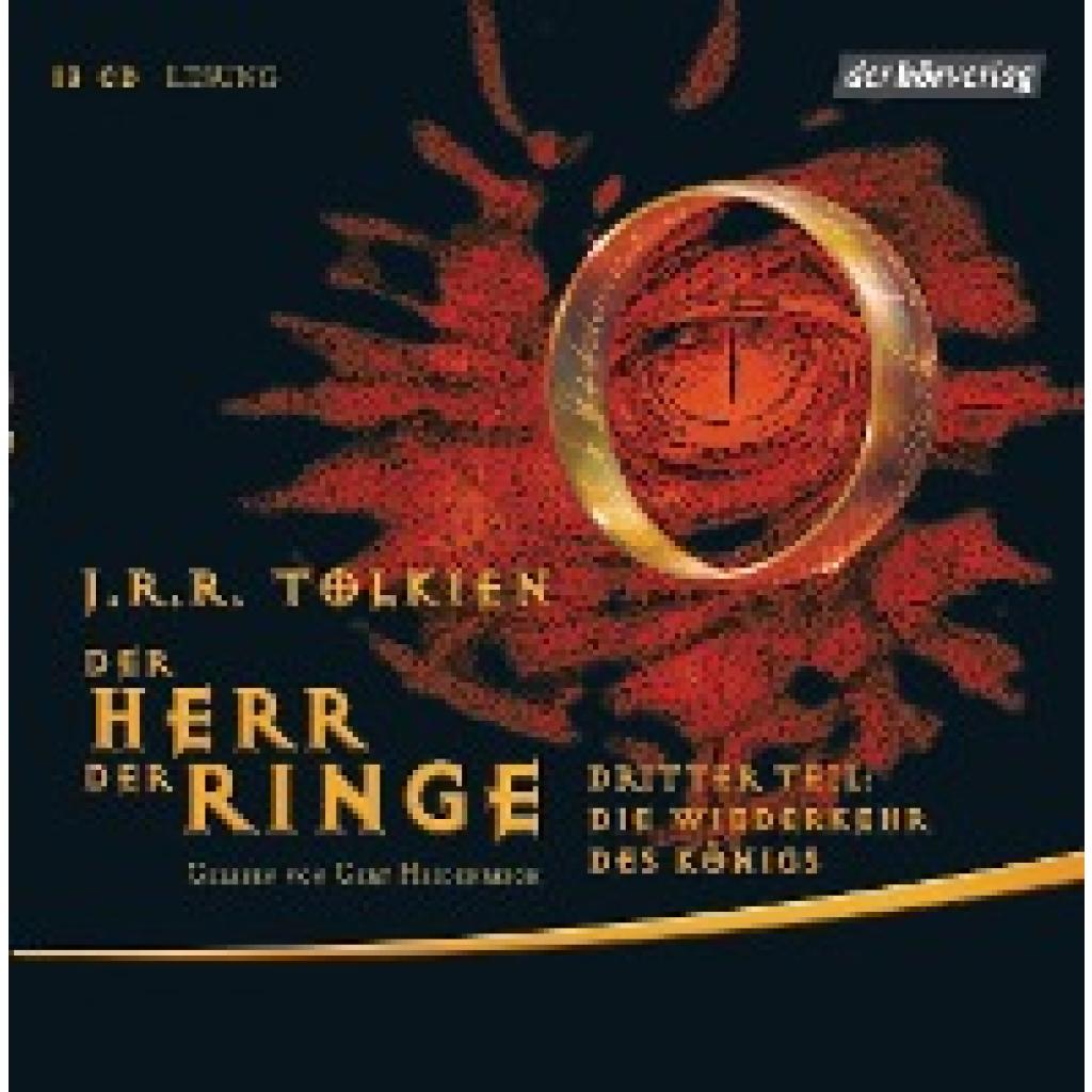 Das große Finale Frodo will endgültig den Ring vernichten. Doch die Last ist schwer und Sam muss ihm helfen, den Ring zur Schicksalsschlucht zu bringen. Dort erwartet sie Gollum, der seinen Schatz für sich will. >Gert Heidenreich liest auch den dritten Teil der Fantasytrilogie in der Übersetzung von Wolfgang Krege und begleitet die Gefährten bei ihrem letzten Schlag gegen Sauron. Er erzählt von Frodo und seinen Freunden so einfühlsam und zugleich mit solcher Kraft, als spüre er die Macht des Rings. Auch für den dritten Band hat die Tolkiengesellschaft die Auswahl für das umfangreiche Booklet getroffen. Der Anhang beinhaltet die Geschichte von Aragorn und Arwen, sowie eine Stammbäume und Zeittafeln. (13 CDs, Laufzeit: 16h 20)