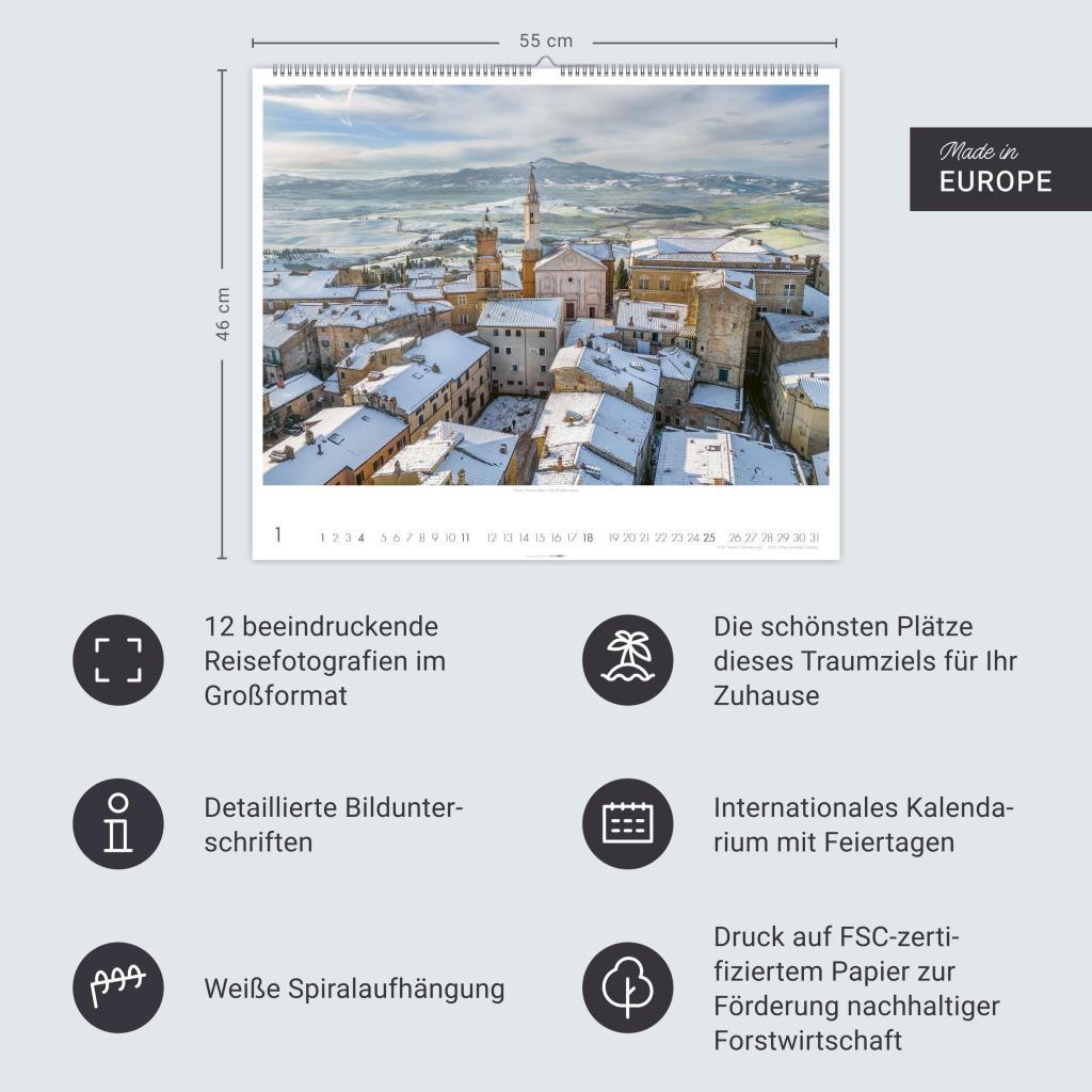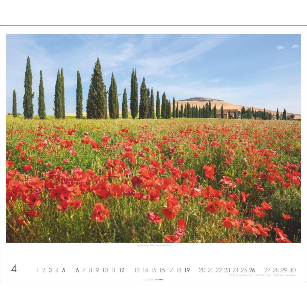 Fotograf und Italienkenner Fabio Muzzi fängt in einem großen Wandkalender die Seele der Toskana ein. Kalender-Landschaften: Italien-Feeling für Zuhause.
