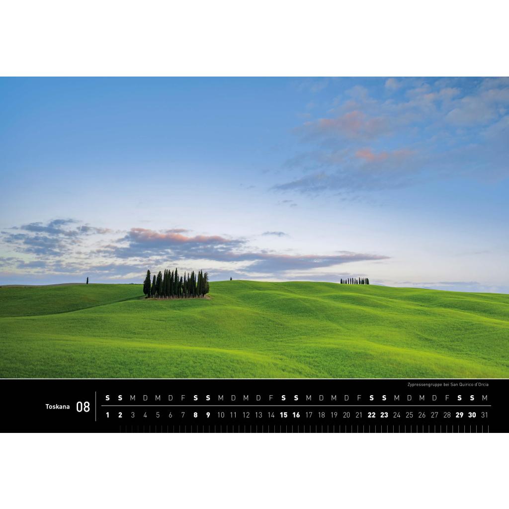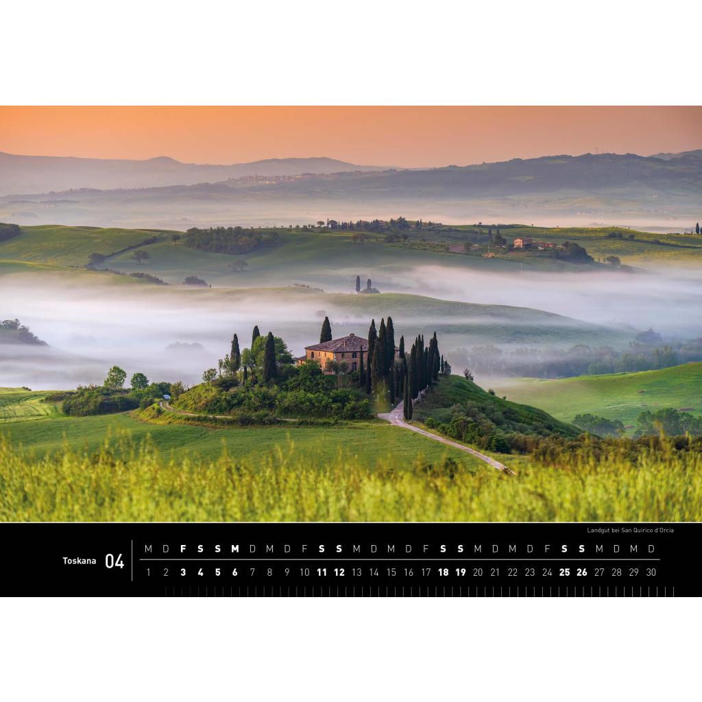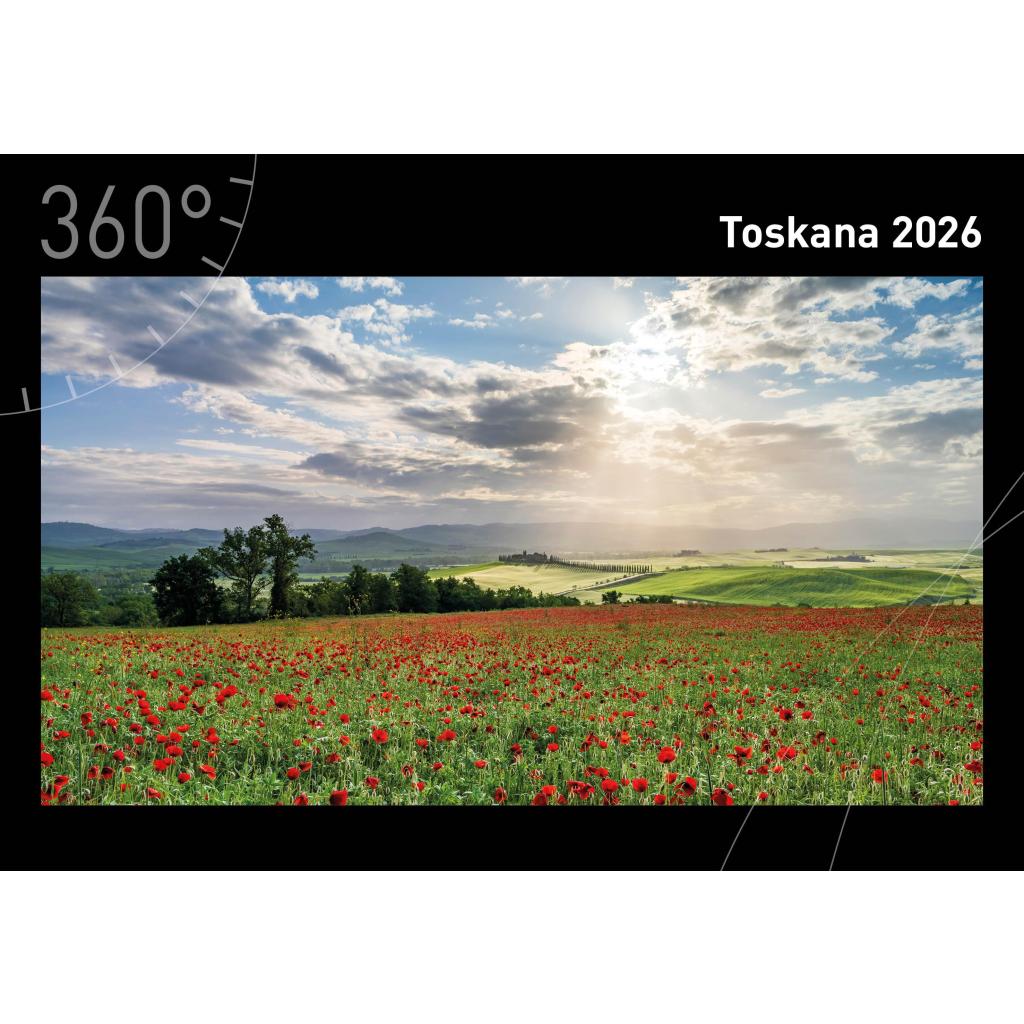 | Keyword: | Altstädte; Dolce Vita; Fotos Toskana; Italien 2026; Italienfans; Jahreskalender; Landgüter; Landschaftsbilder Toskana; Reisekalender; Sehnsuchtsorte; Siena; Toskana Fotokalender 2026; Toskana Wandkalender 2026; Traumkalender; Traumorte Italien; Zypressen |