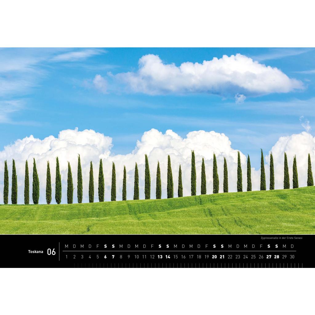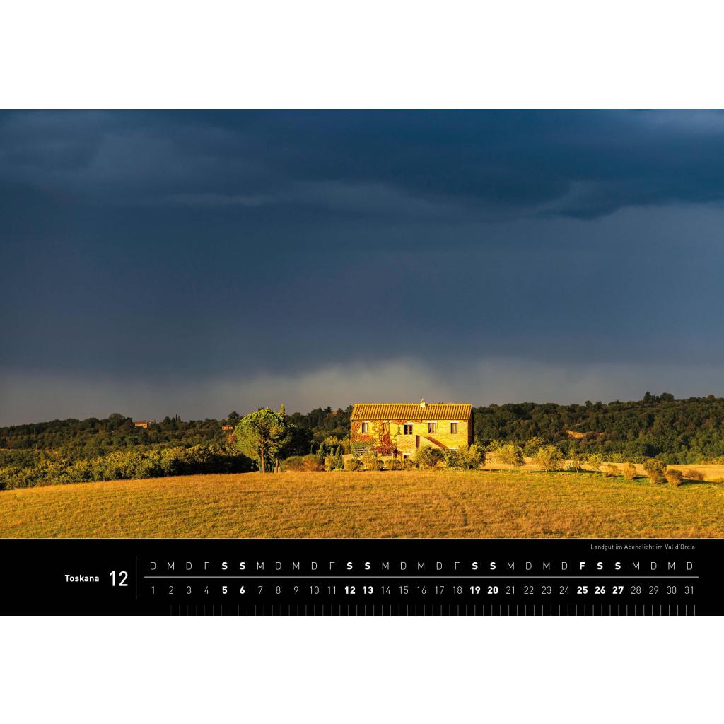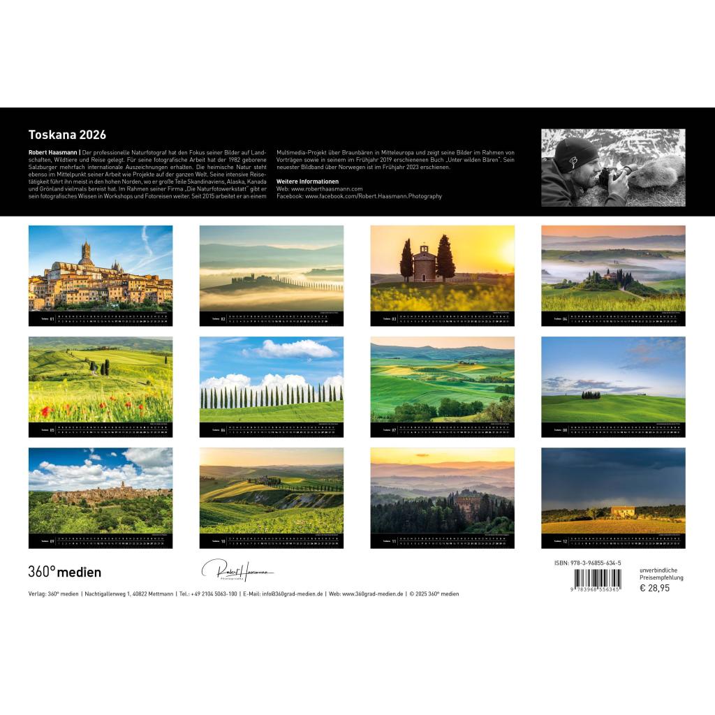 Aus traumhaften Toskana-Aufnahmen des Fotografen Robert Haasmann hat die Redaktion von 360° medien die 13 schönsten Motive ausgewählt und in diesem Kalender zusammen gestellt. Präsentiert werden die Fotos auf hochwertigem Papier im Format 50 cm x 35 cm.