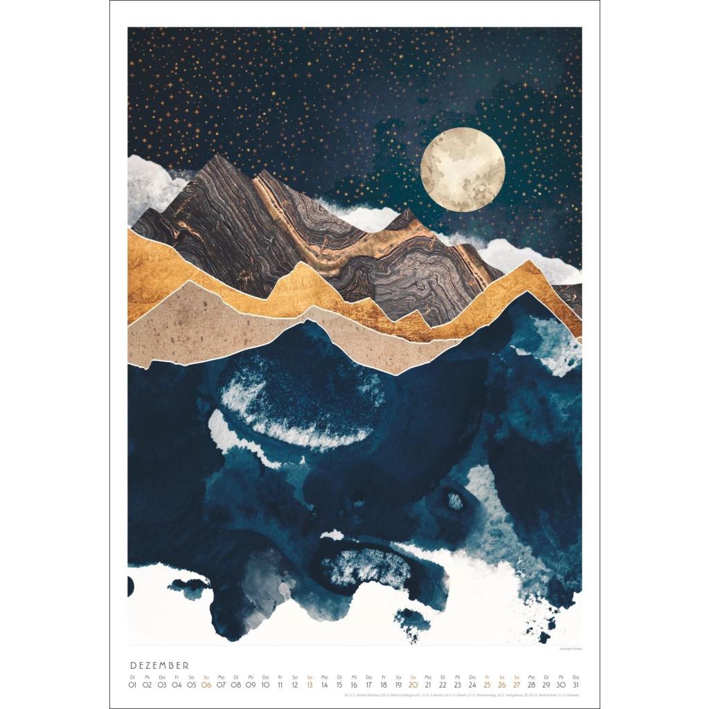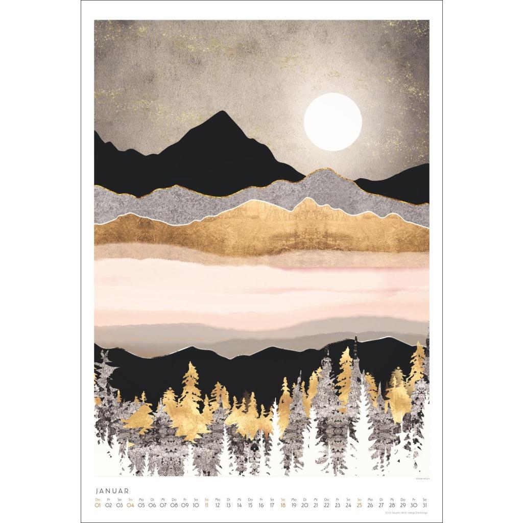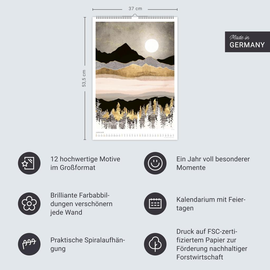 Tiere und Landschaften mit Metallic-Touch. Kunstkalender im Format 37 x 53,5 cm. Bildkalender 2026 von SpaceFrog Designs