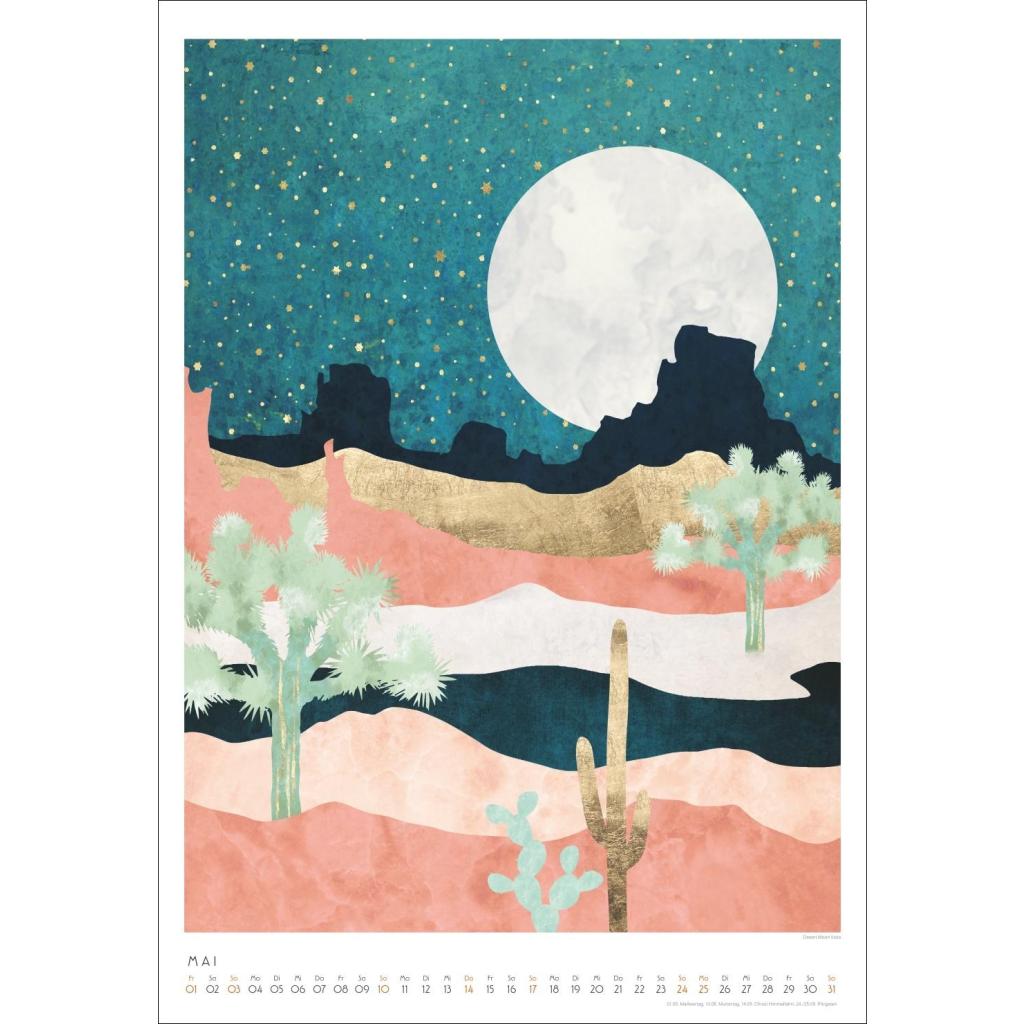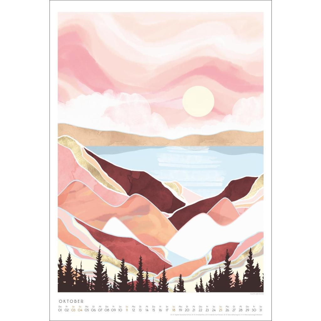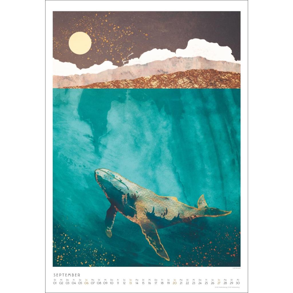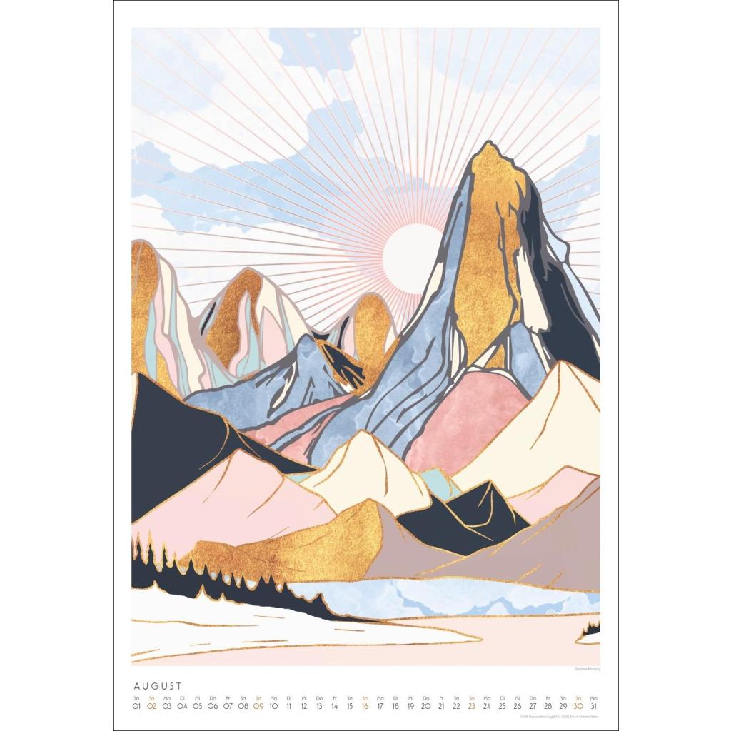 Tiere und Landschaften mit Metallic-Touch. Kunstkalender im Format 37 x 53,5 cm. Bildkalender 2026 von SpaceFrog Designs