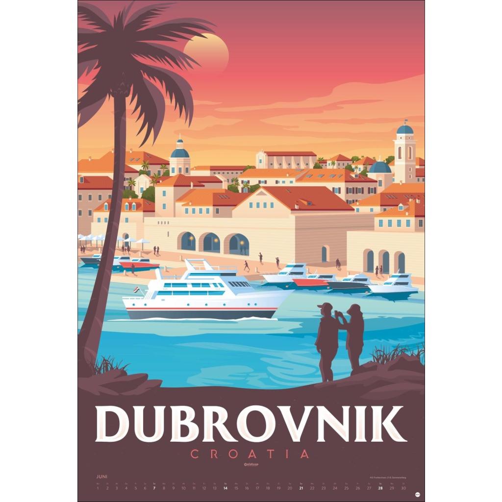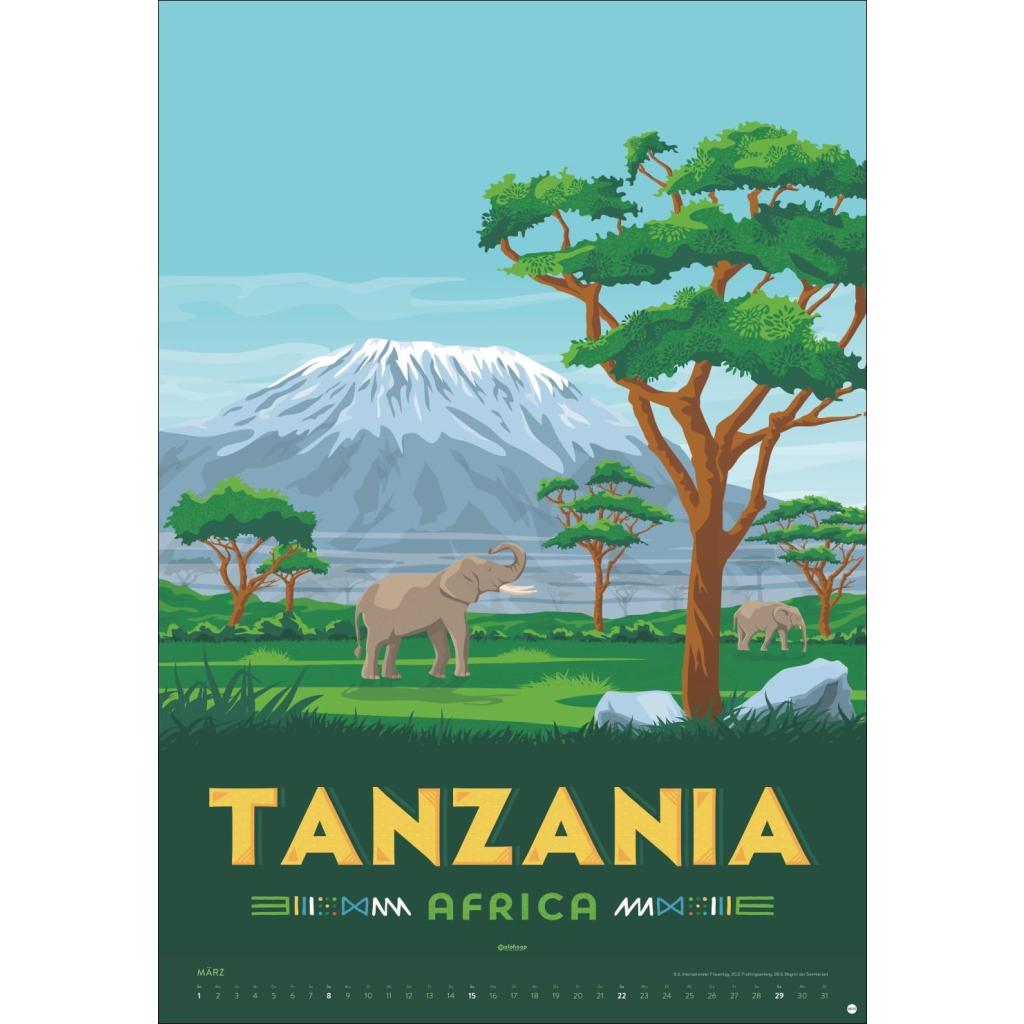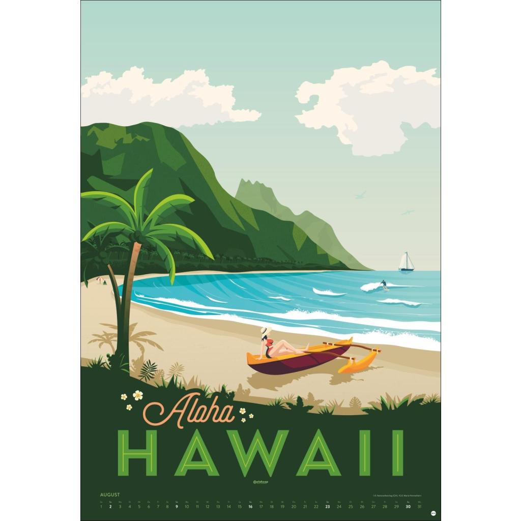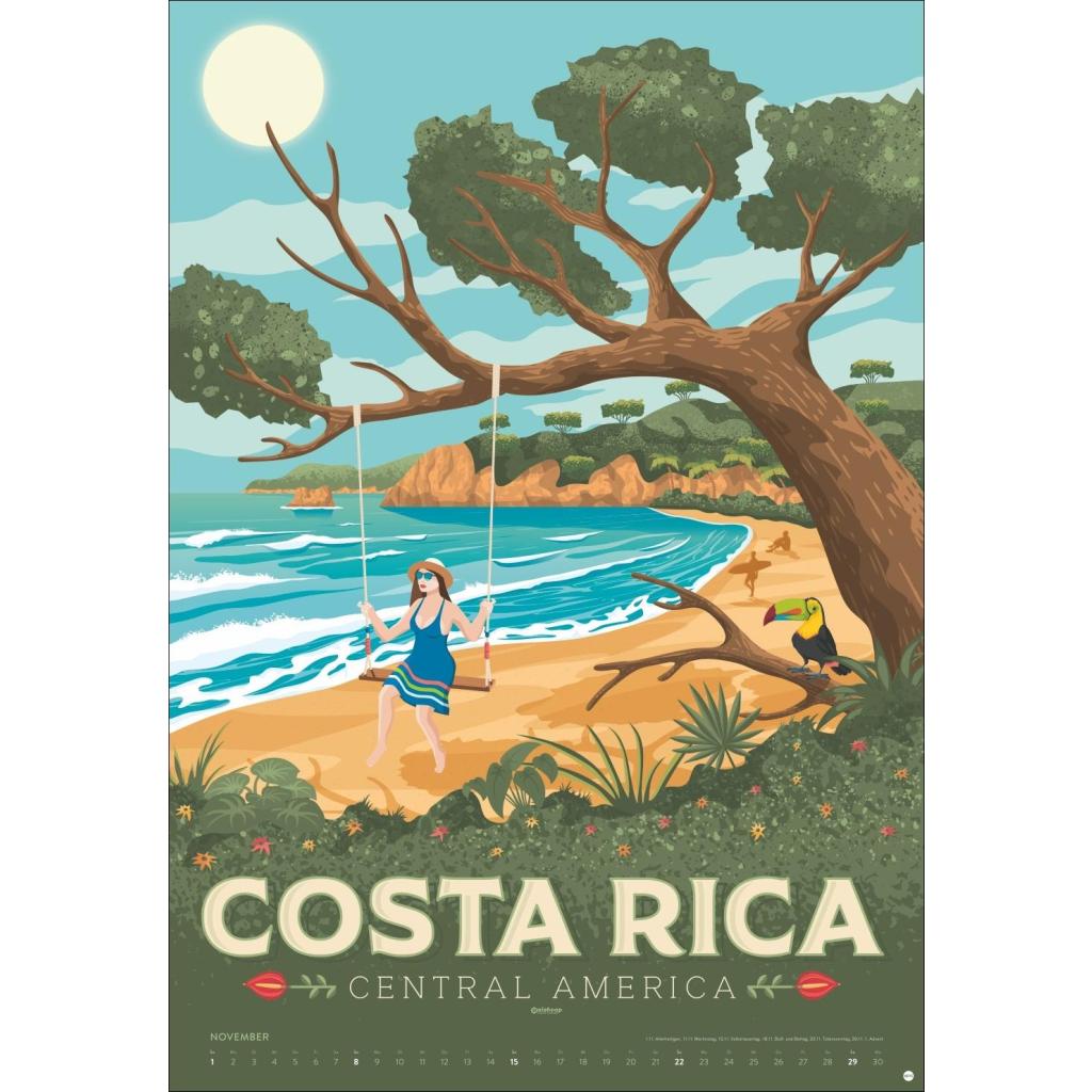 Stylische Vintage-Plakate von traumhaften Reisezielen, für alle die das Fernweh juckt: Großer Wandkalender im Format 37 x 53,5 cm