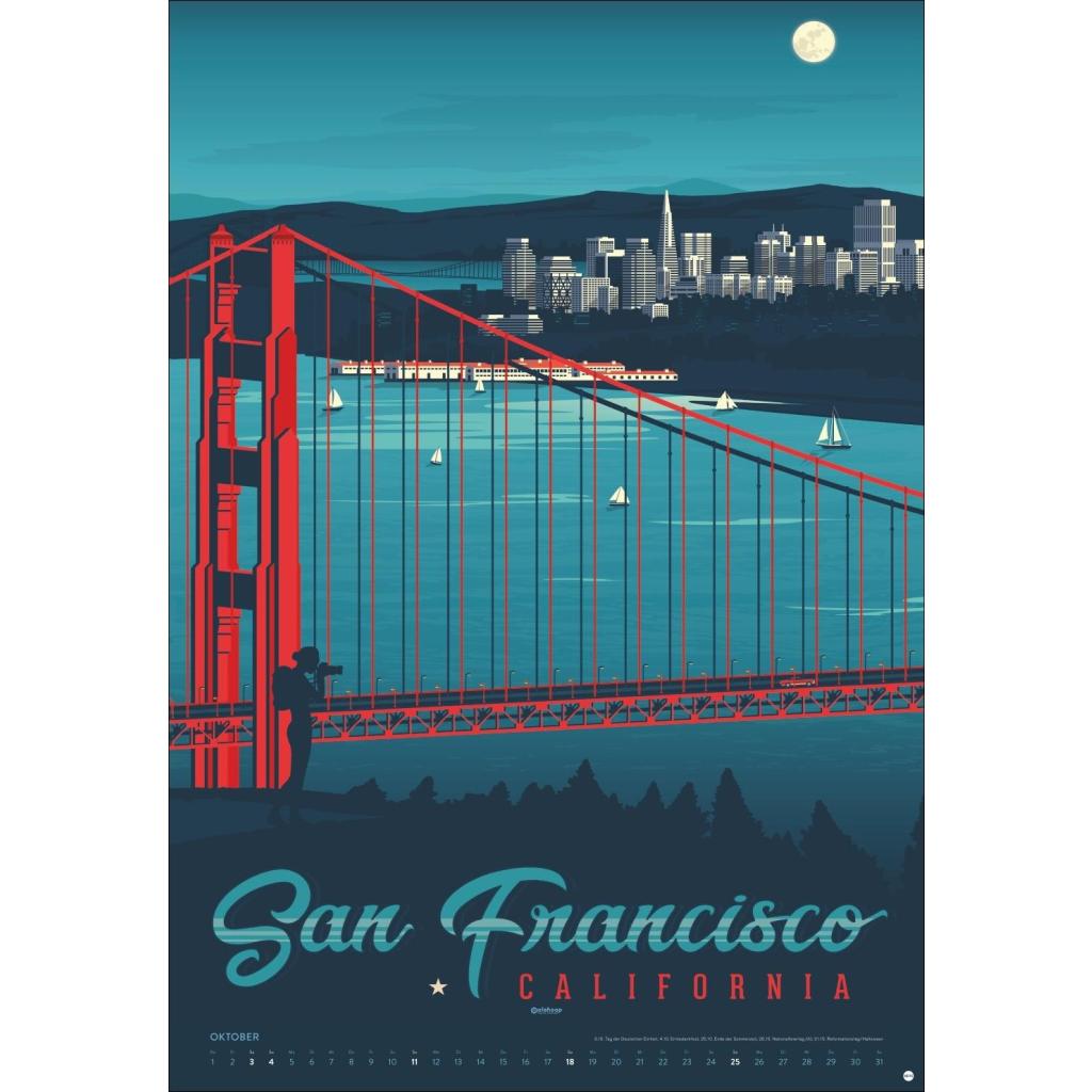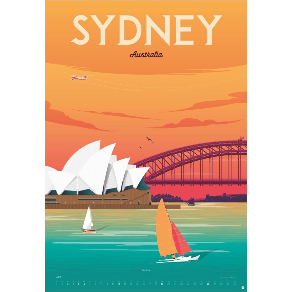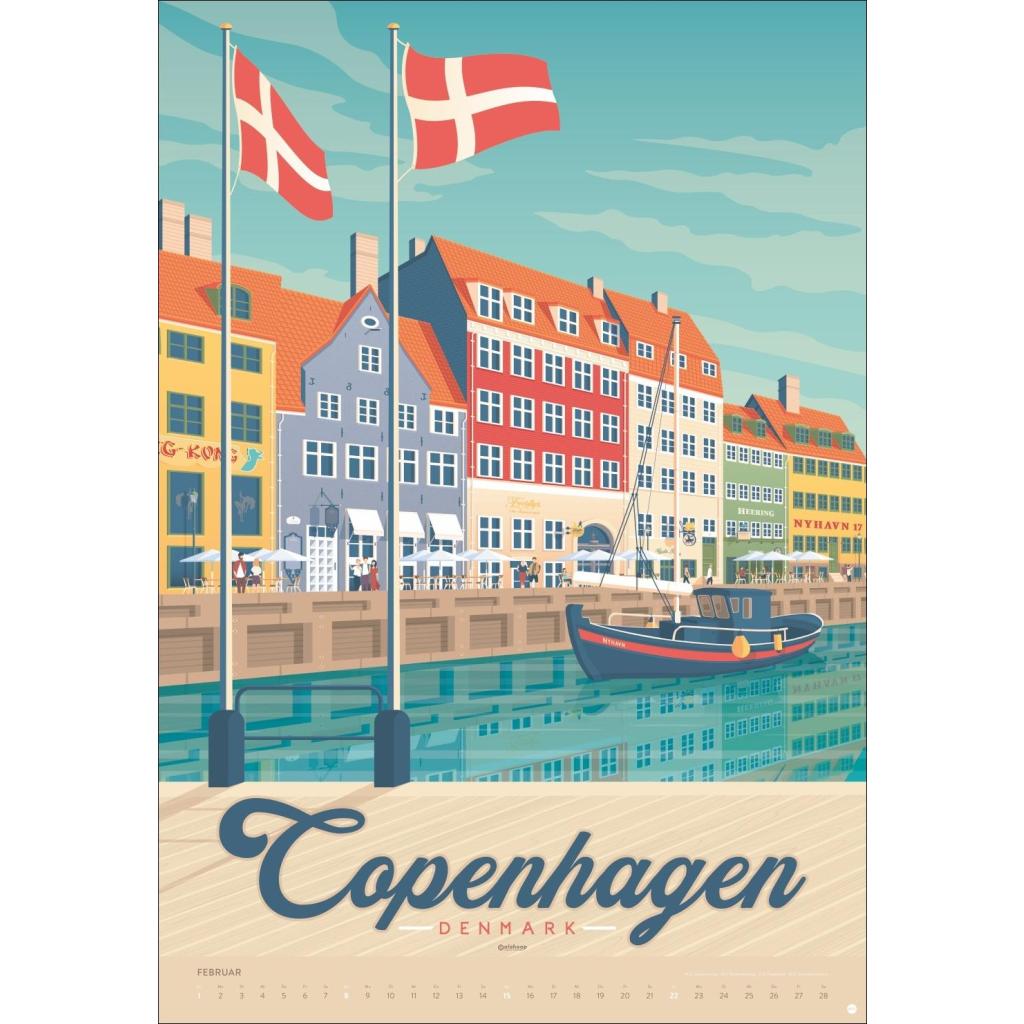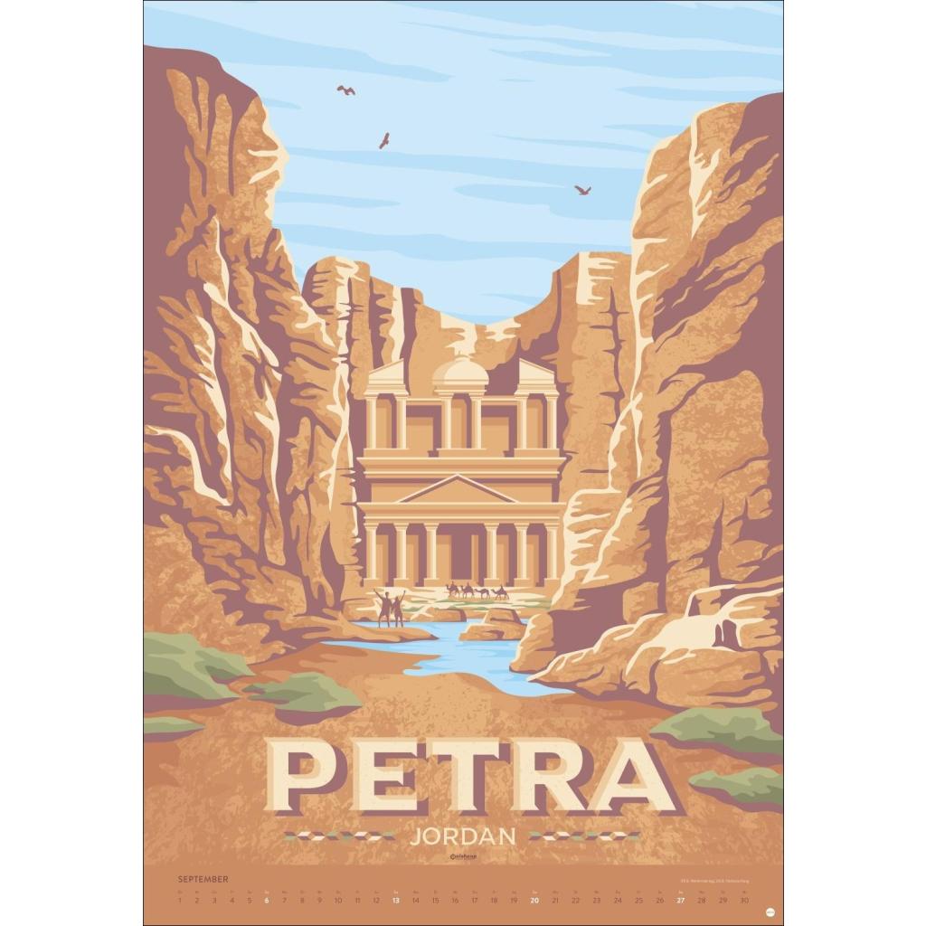 Stylische Vintage-Plakate von traumhaften Reisezielen, für alle die das Fernweh juckt: Großer Wandkalender im Format 37 x 53,5 cm