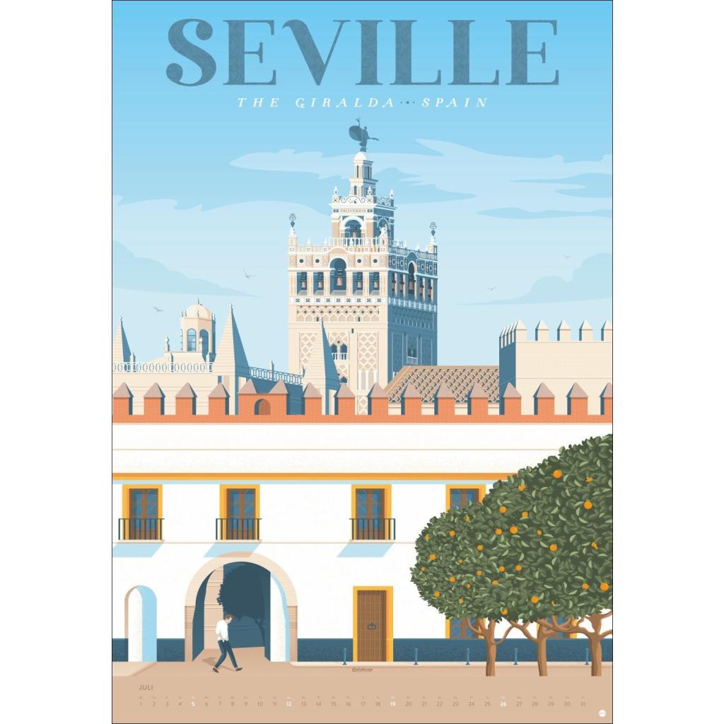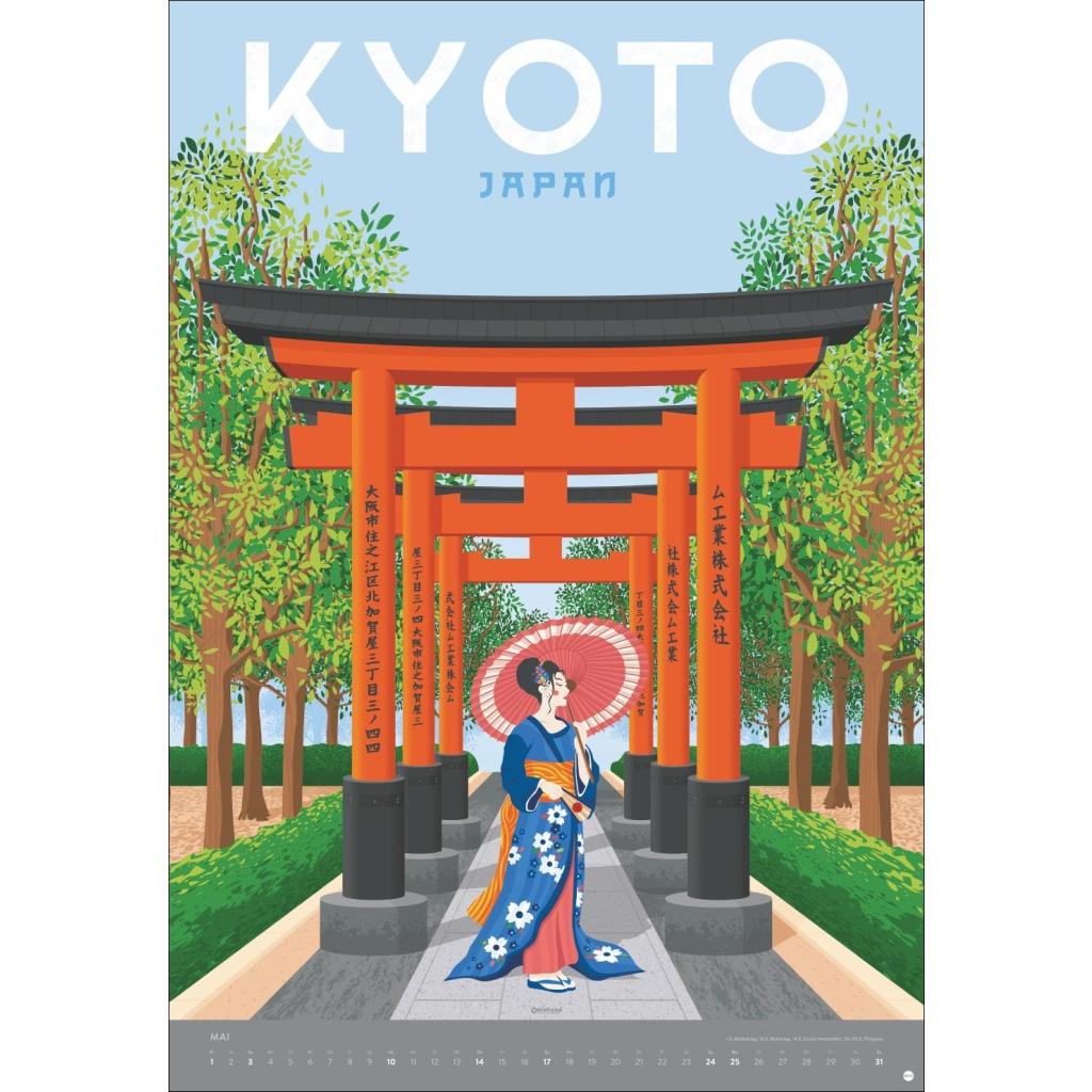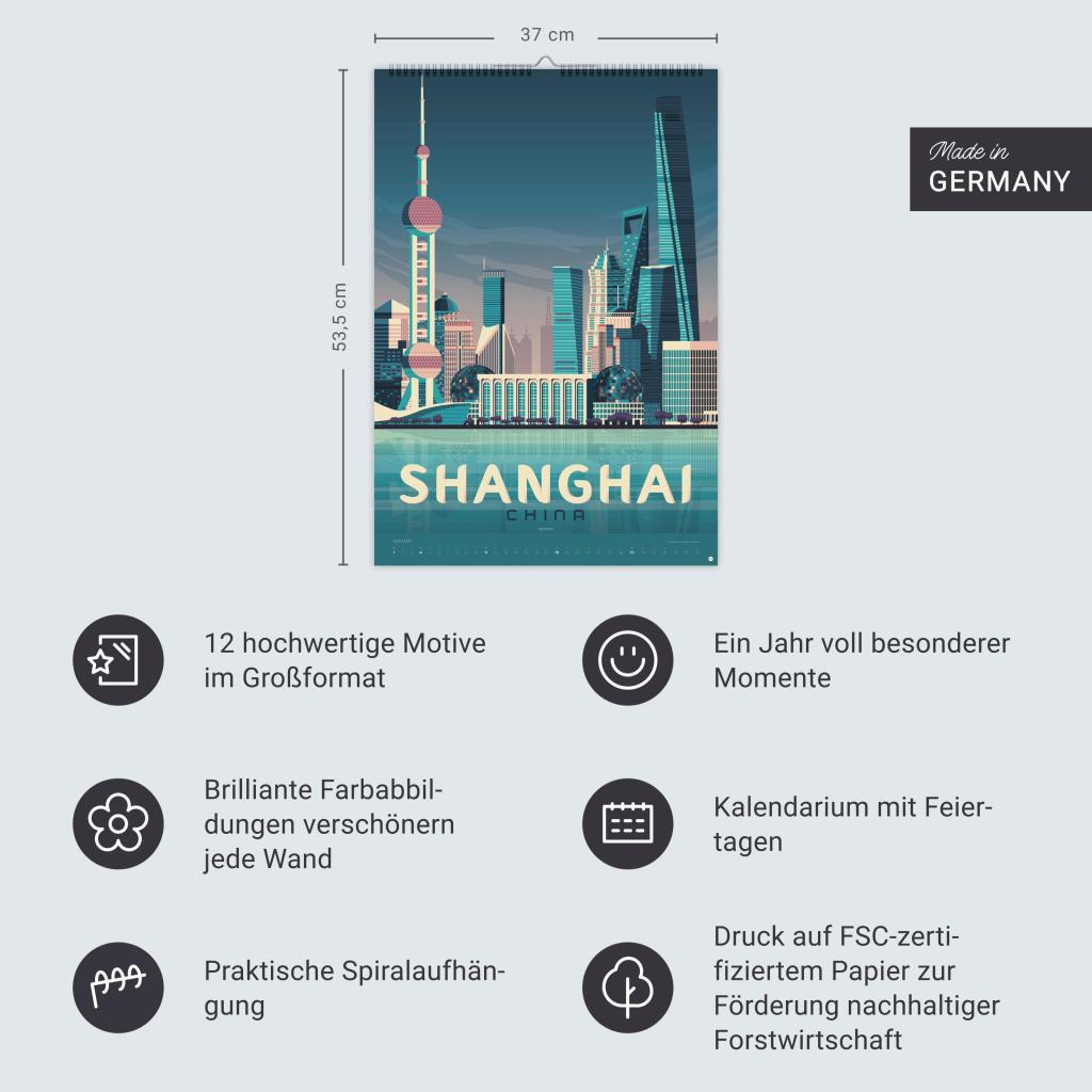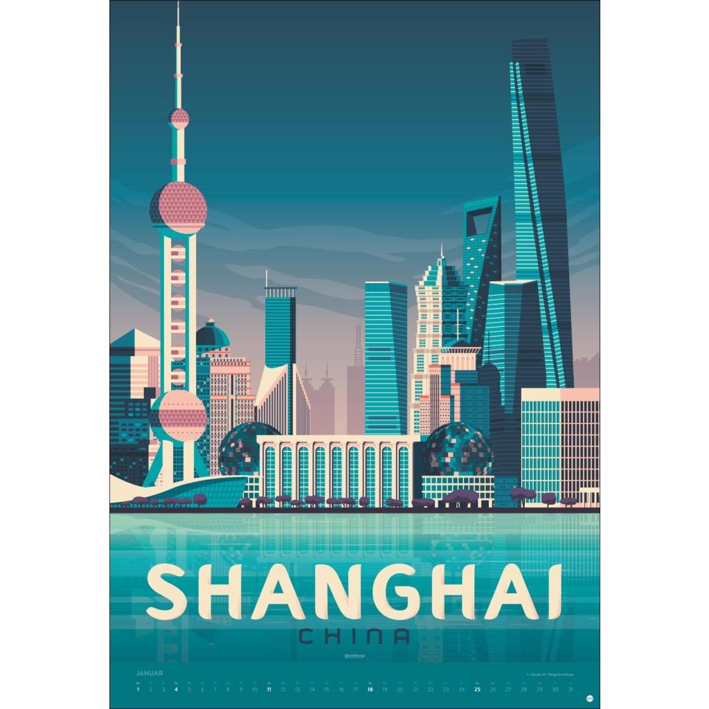 Stylische Vintage-Plakate von traumhaften Reisezielen, für alle die das Fernweh juckt: Großer Wandkalender im Format 37 x 53,5 cm