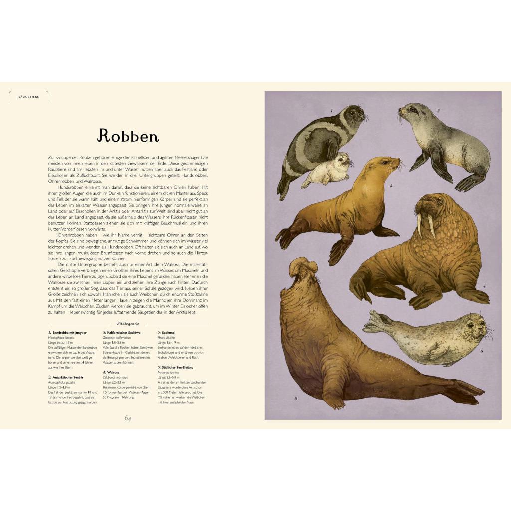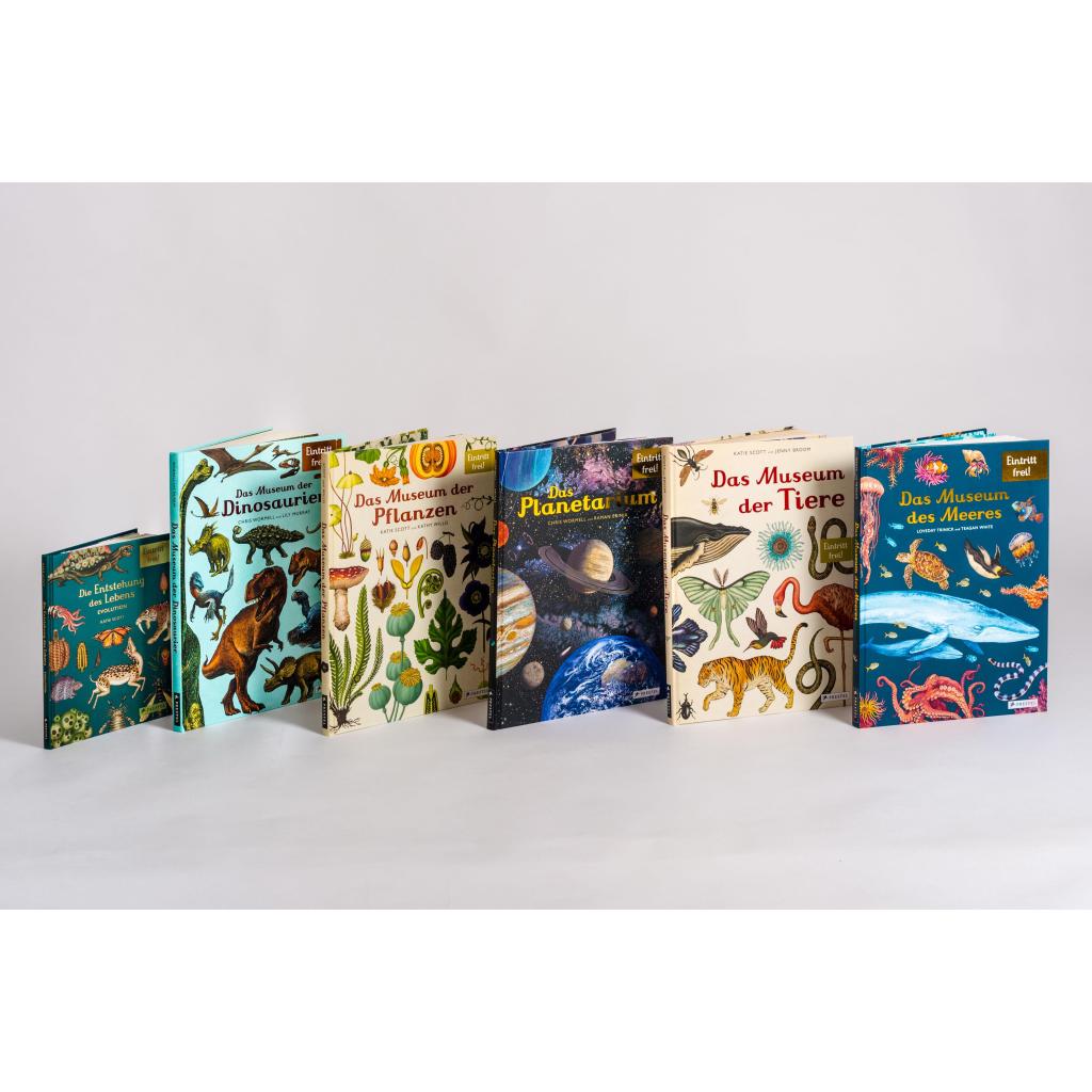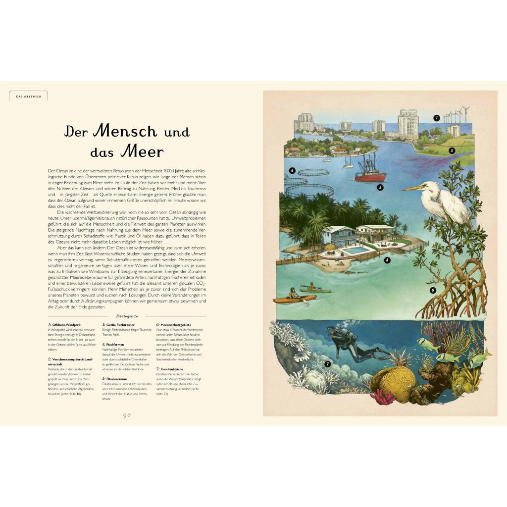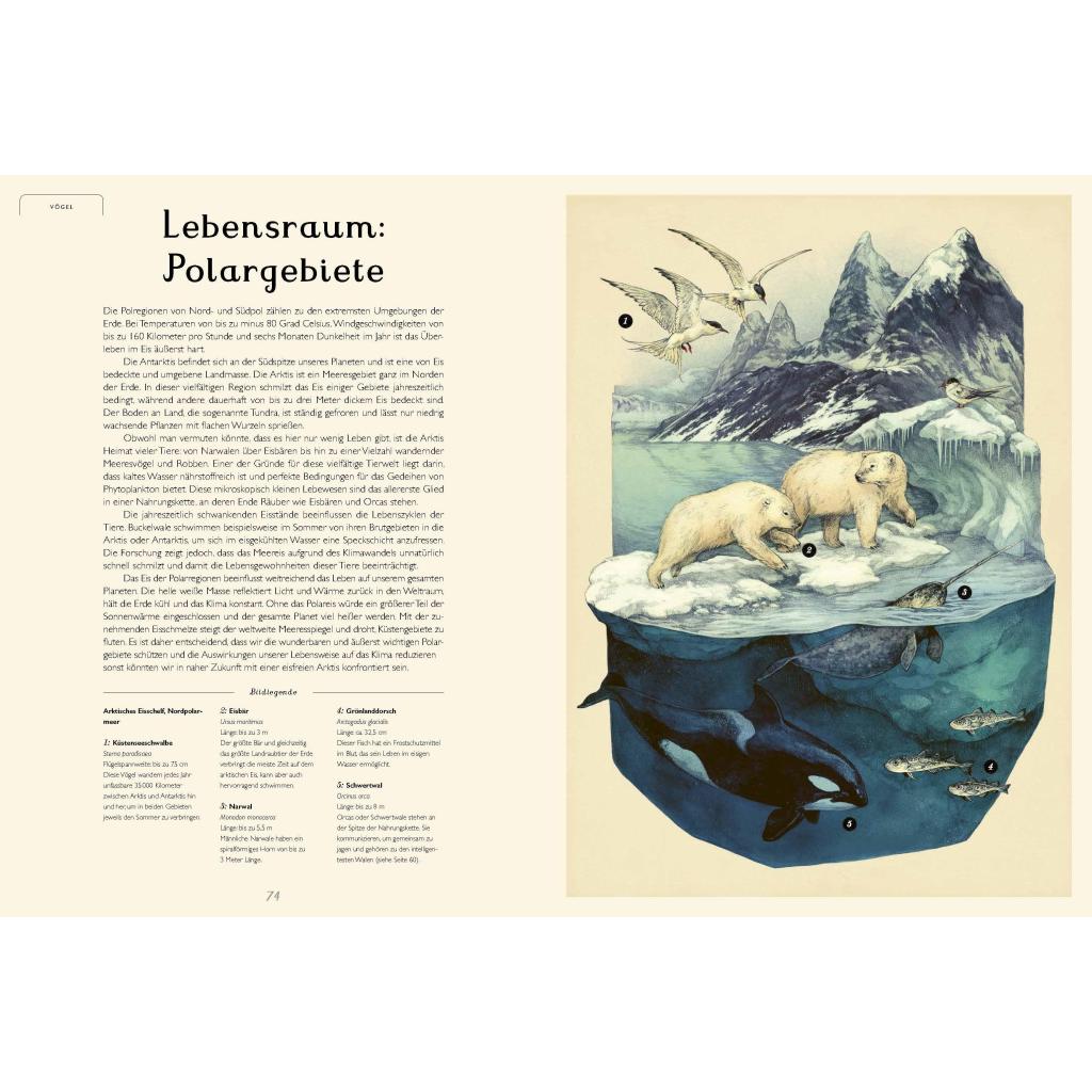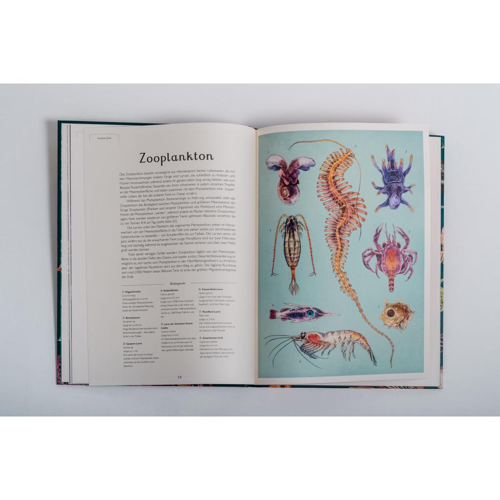 Die größte Ausstellung der Erde öffnet ihre Pforten! Tauche ein in die Unterwasserwelt unserer größten und wertvollsten Lebensräume: der Ozeane! 71 Prozent der Erdoberfläche sind von Meeren bedeckt. Tritt ein und entdecke, was und wer hier lebt: Erkunde die verschiedenen Ökosysteme des Arktischen, Atlantischen, Indischen, Pazifischen und Südlichen Ozeans! Dieses Museum zeigt uns die Schönheit der Weltmeere mit allen ihren Bewohnern, begleitet von informativen Sachtexten der Meeresbiologin Loveday Trinick. Auf großformatigen Tableaus mit liebevoll und detailgetreu gezeichneten Gouache- und Aquarellmalereien der Illustratorin Teagan White sind - wie in einem Aquarium - Korallen, Quallen, Rochen, Schildkröten, Delfine, Wale und vieles mehr zu sehen. Jedes Kapitel befasst sich mit einer Gattung oder einem Lebensraum wie Nesseltiere, Säugetiere, Fische oder Korallenriffe. Der Band der "Eintritt frei"-Reihe fasziniert mit wunderschönen Einblicken in Lebensräume, die uns sonst verborgen bleiben. Dieses Buch wird klimaneutral produziert. Ausstattung: 37 Farbtafeln; mit Goldfolienprägung auf dem Cover, 37 Farbtafeln