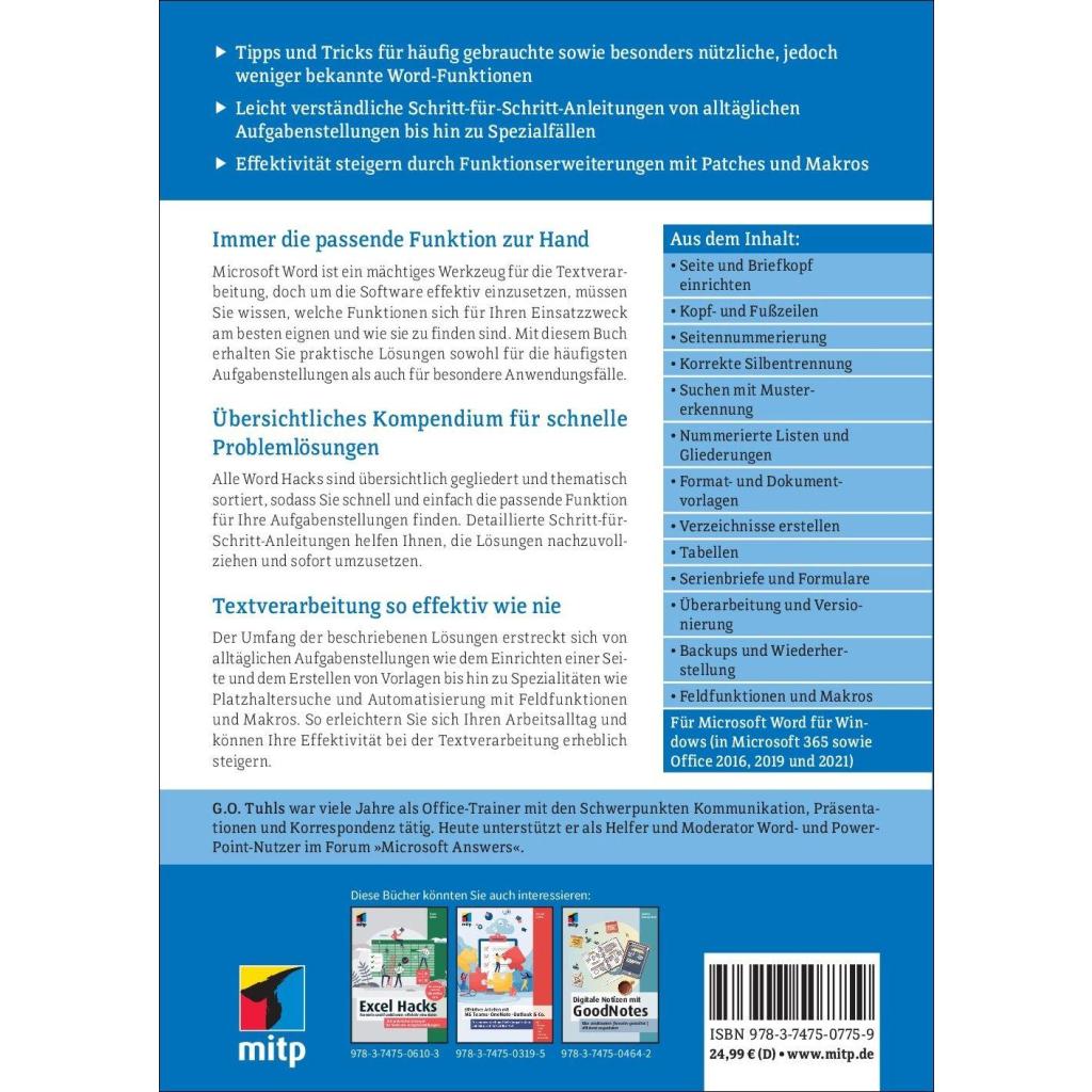 | Keyword: | Microsoft; Office; autokorrrektur; buch; feldfunktionen; formatvorlagen; fußnoten; fußzeilen; kopfzeilen; makros; microsoft word; mitp; ms office; ms word; rechtschreibprüfung; serienbriefe; silbentrennung; sonderzeichen; vba; word; word serienbriefe; word vorlagen; überschriften |