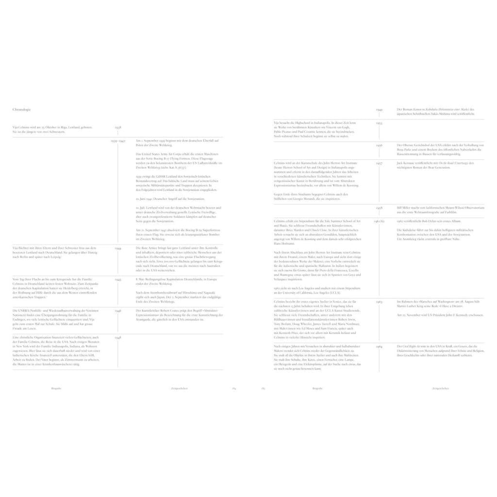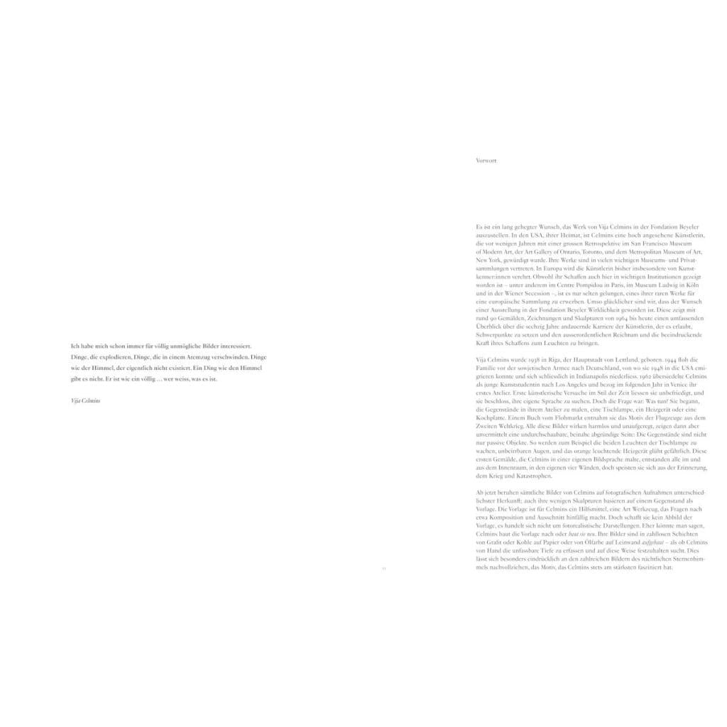 Die Künstlerin Vija Celmins ist eine Meisterin der subtilen Bildgewalt. Sie ist vor allem für ihre fesselnden Gemälde und Zeichnungen bekannt, die Galaxien, Oberflächen vom Mond, Wüstenböden und Ozeane oder feine Spinnennetze darstellen. Ihre Werke sind nicht monumental; sie sind mit einer zurückhaltenden Palette gemalt und entziehen sich einem schnellen Sehen. Doch wenn man sich einmal auf sie einlässt, verfängt sich der Blick darin und sie entfalten ihre Faszination und große Schönheit. Dieses Buch präsentiert alle rund 90 Werke der Ausstellung in der Fondation Beyeler. Opulente Bildstrecken werden von Kommentaren der Künstlerin zu ihren Werken begleitet, davon die meisten erstmals publiziert. Beiträge namhafter Autor*innen und Künstler*innen wie Julian Bell, Teju Cole, Rachel Cusk, Marlene Dumas und Glenn Ligon eröffnen neue Sichtweisen auf das beeindruckende Schaffen der Künstlerin. Vija Celmins (*1938, Riga) emigrierte Ende der 1940er Jahre mit ihrer Familie in die Vereinigten Staaten. Sie studierte Bildende Kunst an der John Herron School of Art in Indiana und besuchte 1961 einen Sommerkurs an der Yale University, bevor sie an der UCLA einen Master-Abschluss erwarb. Sie hatte Einzelausstellungen in zahlreichen Museen, darunter das Centre Pompidou in Paris, die Menil Collection in Houston und das Metropolitan Museum of Art in New York. Im Jahr 1996 wurde sie in die American Academy of Arts and Letters aufgenommen, 1997 erhielt sie das renommierte MacArthur-Stipendium, 2023 den Praemium Imperiale.