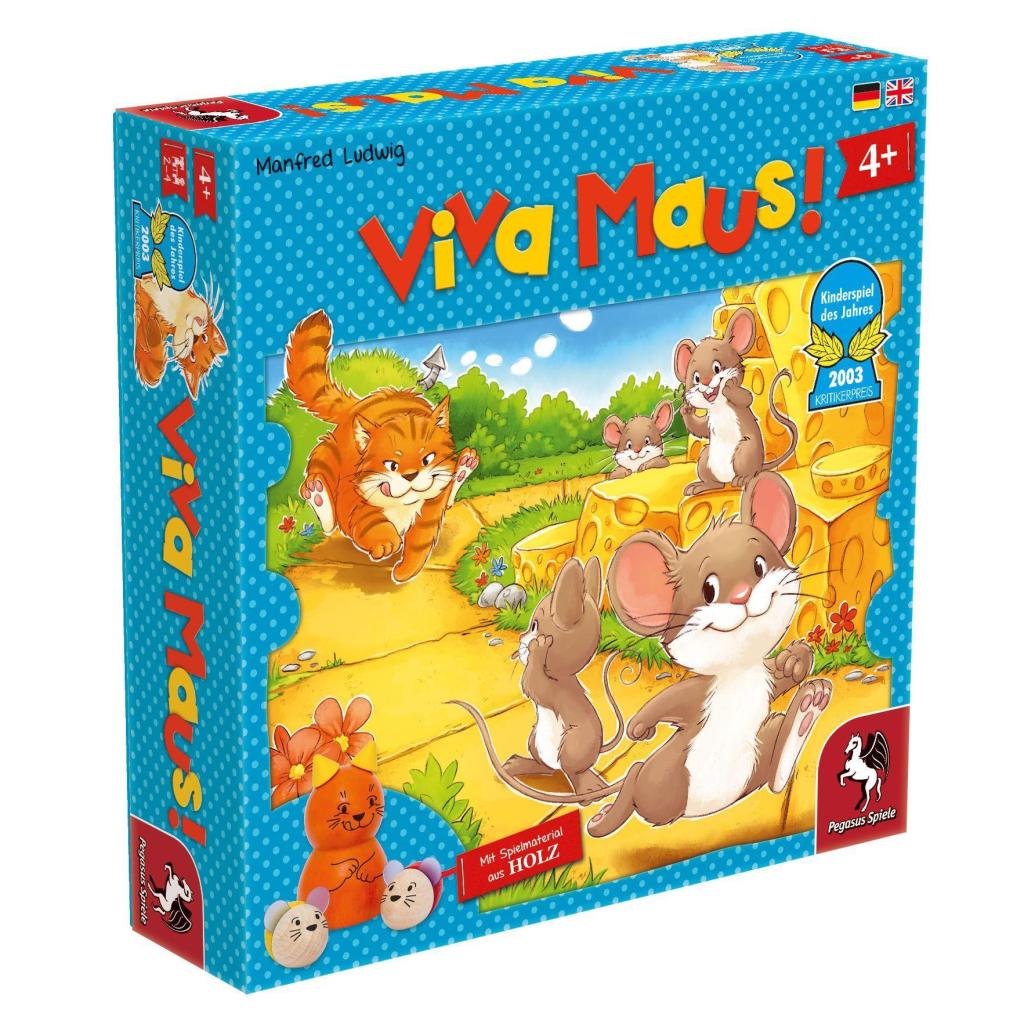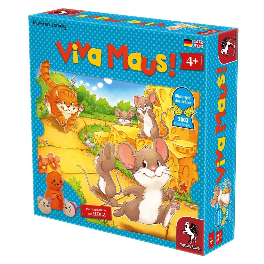 Wie toll ein Land voll Käse wäre, denkt sich so manch eine Maus und macht sich auf ins Schlaraffenland. Doch der Weg ist nicht sicher, wenn eine Katze von der Expedition erfahren hat. Viva Maus! schickt die Mäusefamilien auf den Weg, den Käse zu finden, aber manchmal ist es ratsamer sich in einer Mäusewohnung zu verschanzen, wenn die Katze zu nahe kommt. Käse gibt es dort genügend - doch im Schlaraffenland gibt es mehr ... Viva Maus! Ist mit seinen einfachen Regeln und dem spannenden Wettlauf von Katz und Maus nicht nur ein ausgezeichnetes Kinder-, sondern auch ein hervorragendes Familienspiel. Von diesem Käse kann man nicht genug bekommen.