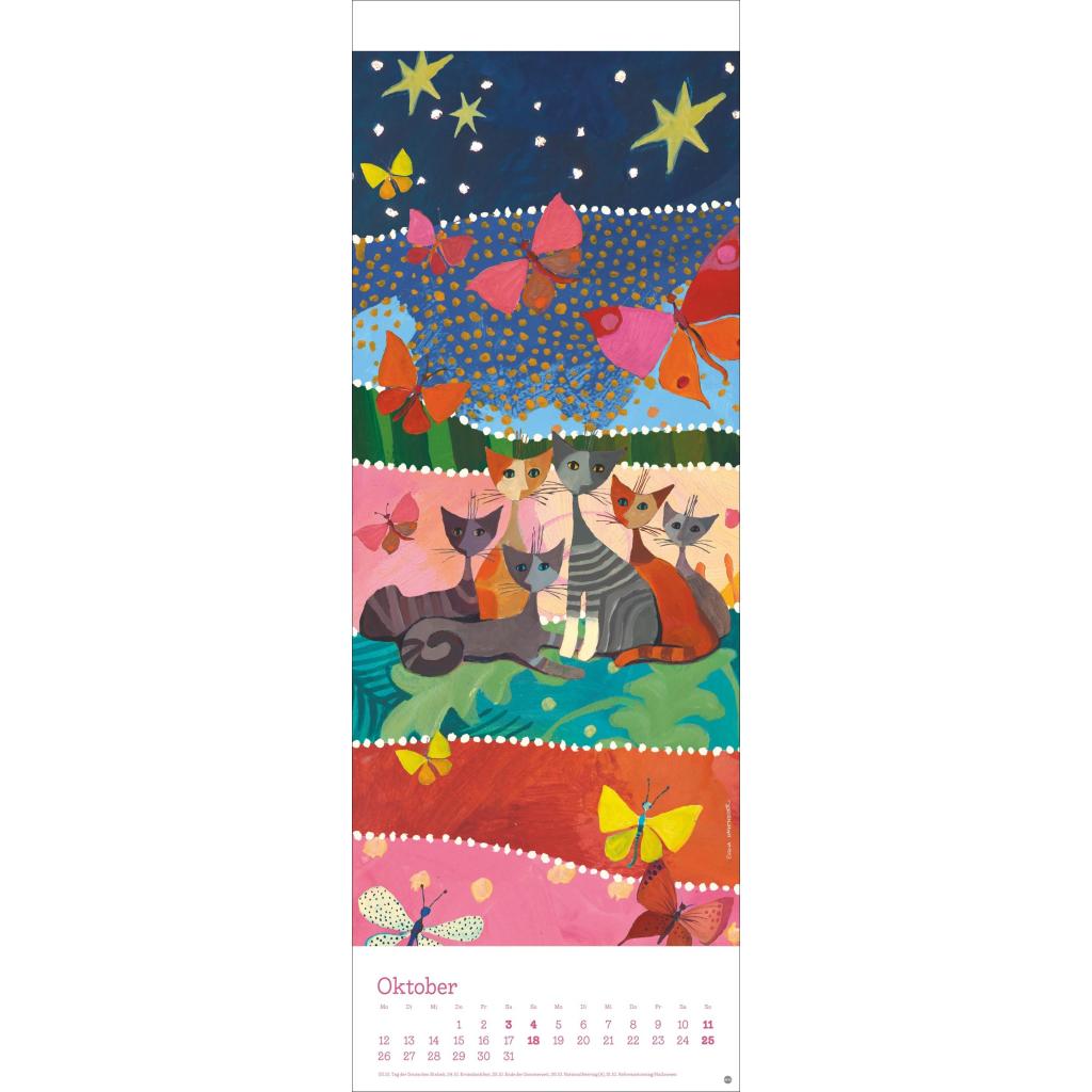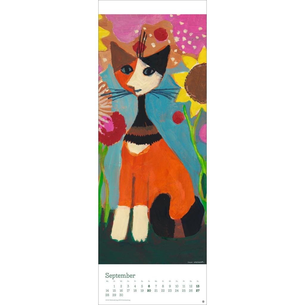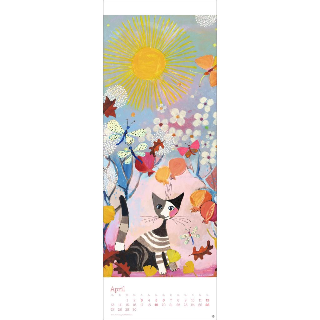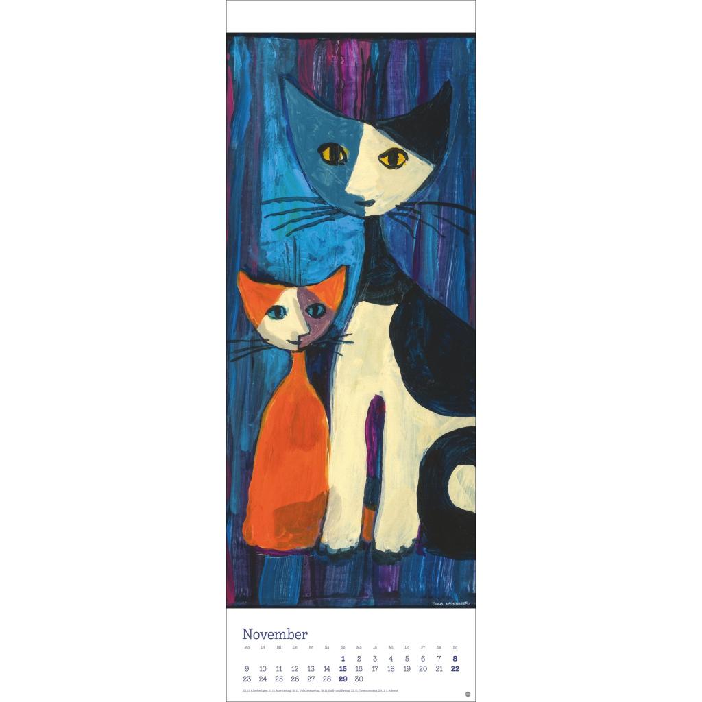 Kunstvoller Wandkalender mit farbenfrohen Katzenbildern. Langer Kunst-Kalender 2026 XL. 24,5 x 69 cm.
