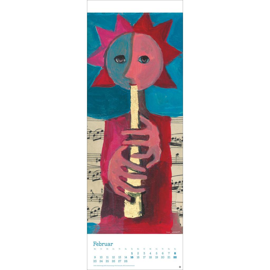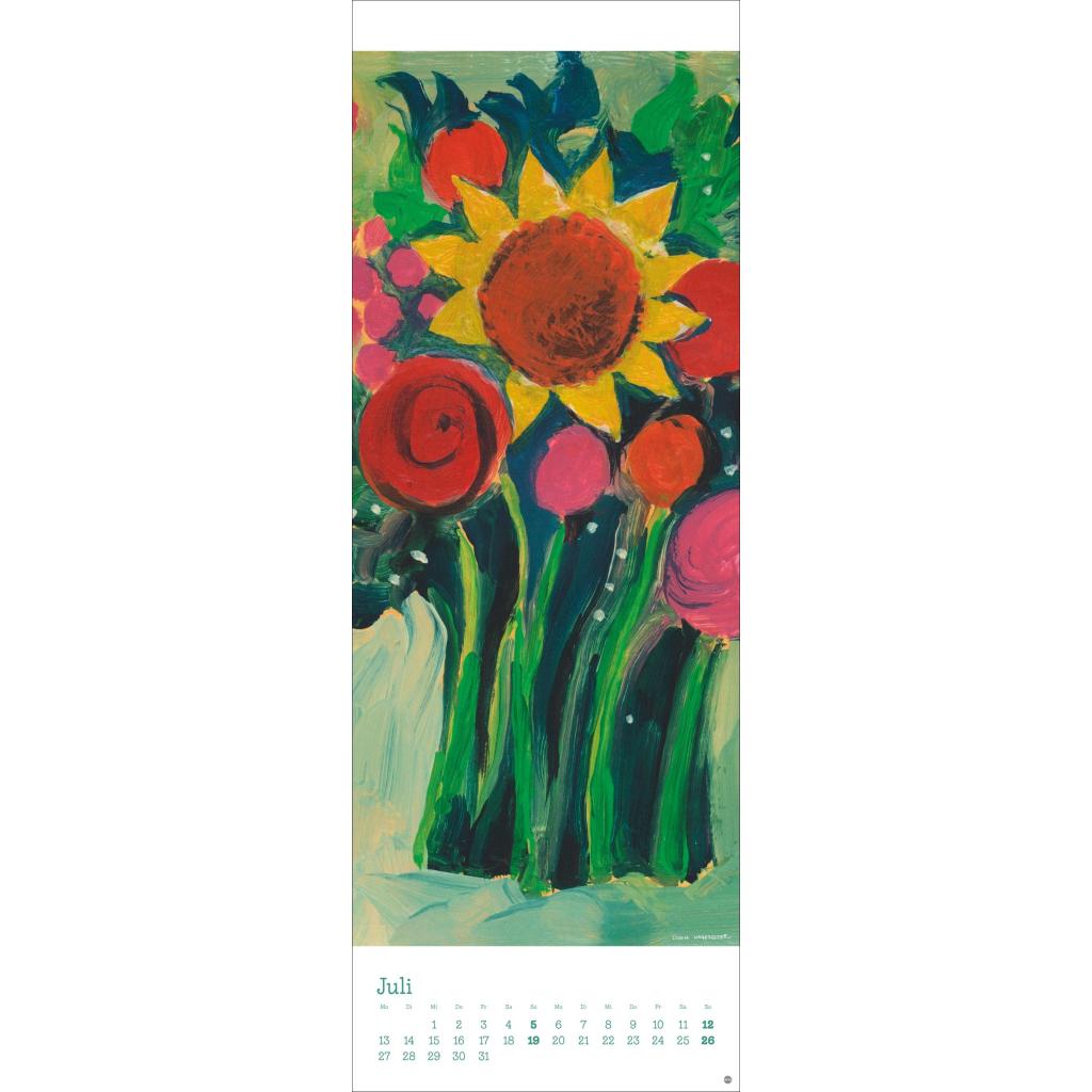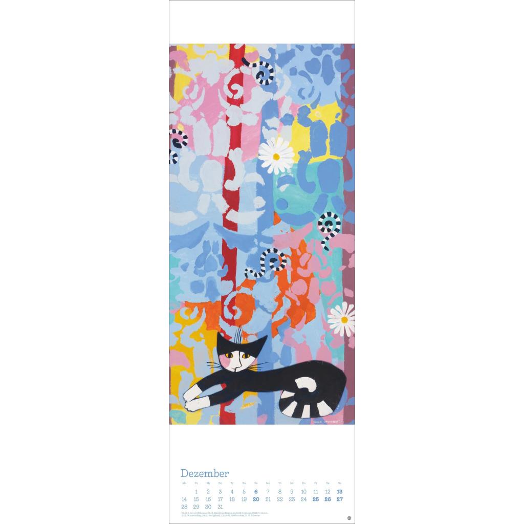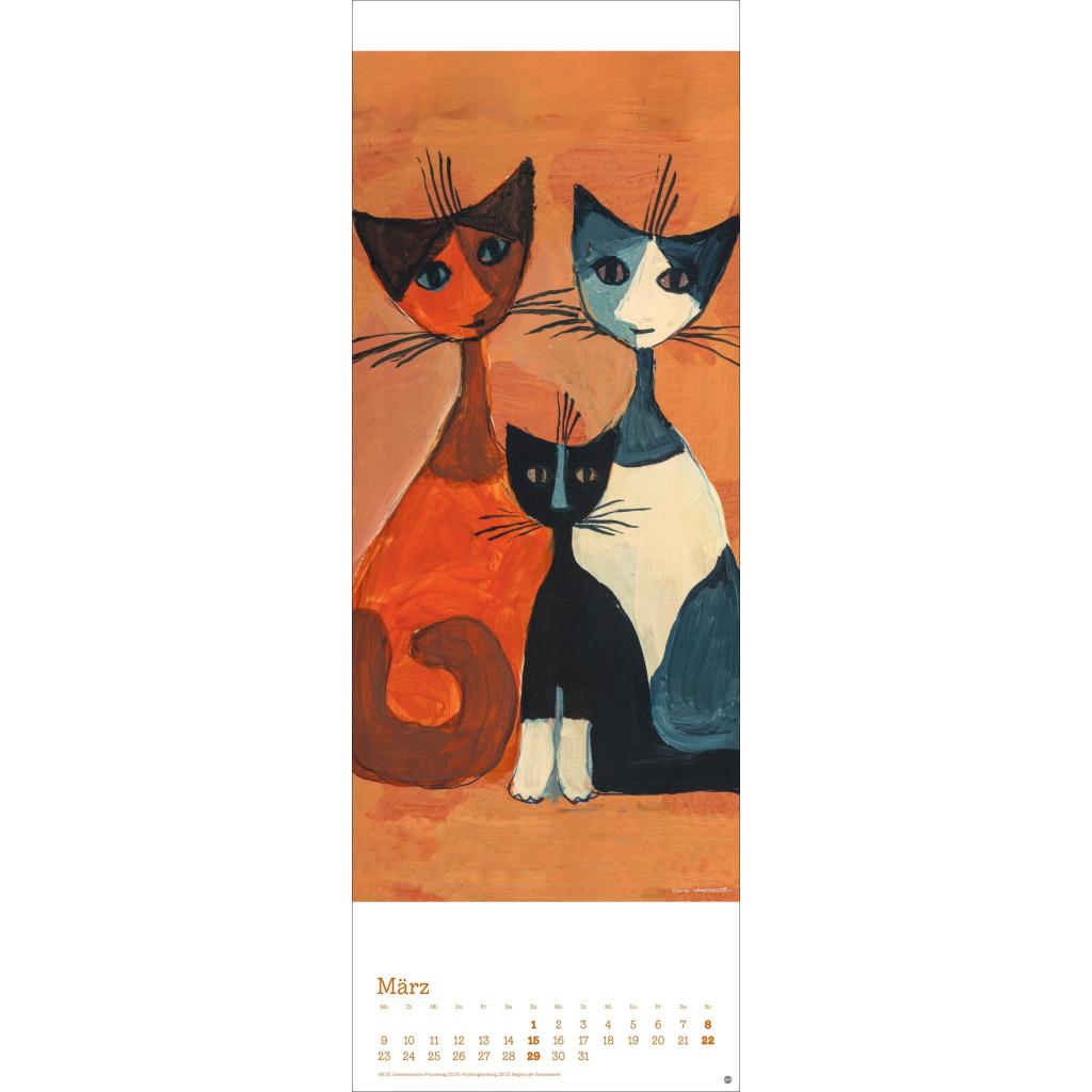 Kunstvoller Wandkalender mit farbenfrohen Katzenbildern. Langer Kunst-Kalender 2026 XL. 24,5 x 69 cm.