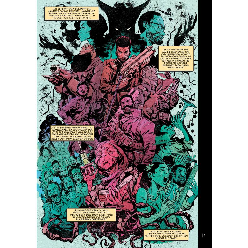 Ausgezeichnet mit dem Eisner Award 2020 als beste neue Serie! Ein großes Übel hat die Welt befallen, und die Sangeryes müssen sich eingestehen, dass sie nicht mal in der Lage sind, sich selbst davor zu schützen, geschweige denn die gesamte Menschheit. Nur wenn sie sich ihren inneren Dämonen stellen, haben sie eine Chance, die Kräfte des Bösen zu besiegen, bevor es zu spät ist. Doch das werden nicht alle Sangeryes überleben... David F. Walker und Sanford Greene ('Power Man', 'Iron Fist') versetzen die Geschichte um eine dysfunktionale Familie in ein unverbrauchtes Setting, das ihnen spürbar am Herzen liegt. Diese Monsterhatz ist wie Jazz: unerwartet, dynamisch und aufregend. Beinhaltet Heft 11 - 15 der Reihe.