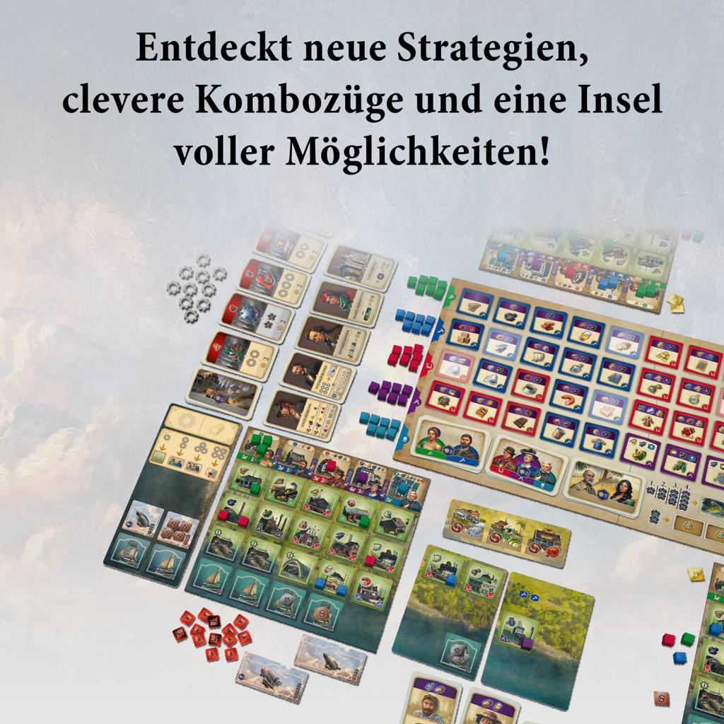 Die Erweiterung für das Kennerspiel Anno 1800 für mehr strategische Möglichkeiten und Komplexität. Zusätzliche Auftrags-Karten eröffnen völlig neue Strategien. Innovations-Karten und Zahnräder ermöglichen Kombo-Züge. Mit sechsteiliger Solo-Kampagne auch alleine spielbar. Die Erweiterung für Anno 1800 - Das Brettspiel bringt die Industrialisierung voran und bietet neue Möglichkeiten und Kombo-Züge. Innovationskarten und Zahnräder steigern die Effizienz, Luftschiffe fördern Handel, Expansion und Einfluss, Patente schützen die eigenen Industrien und neue Auftragskarten eröffnen völlig neue Strategien. Die Erweiterung beinhaltet einen Solo-Modus und ist nur mit dem Basisspiel spielbar. Entdecke das Kennerspiel von Martin Wallace jetzt mit noch mehr Möglichkeiten und intensivem Spielspaß.