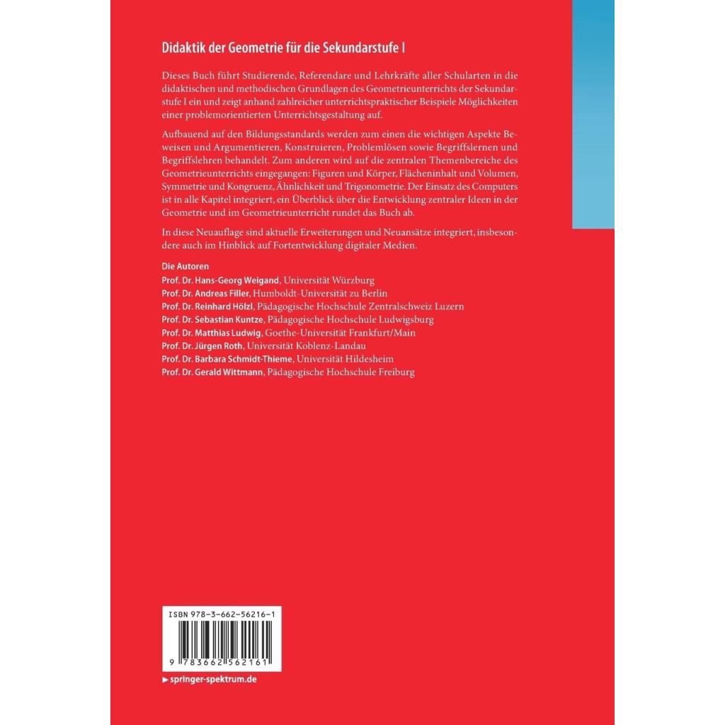 Dieses Buch führt Studierende, Referendare und Lehrkräfte aller Schularten in die didaktischen und methodischen Grundlagen des Geometrieunterrichts der Sekundarstufe I ein und zeigt anhand zahlreicher unterrichtspraktischer Beispiele Möglichkeiten einer problemorientierten Unterrichtsgestaltung auf. Aufbauend auf den Bildungsstandards werden zum einen die wichtigen Aspekte Beweisen und Argumentieren, Konstruieren, Problemlösen sowie Begriffslernen und Begriffslehren behandelt. Zum anderen wird auf die zentralen Themenbereiche des Geometrieunterrichts eingegangen: Figuren und Körper, Flächeninhalt und Volumen, Symmetrie und Kongruenz, Ähnlichkeit und Trigonometrie. Der Einsatz des Computers ist in alle Kapitel integriert, ein Überblick über die Entwicklung zentraler Ideen in der Geometrie und im Geometrieunterricht rundet das Buch ab. In diese Neuauflage sind aktuelle Erweiterungen und Neuansätze integriert, insbesondere auch im Hinblick auf Fortentwicklung digitaler Medien. Die Autoren Prof. Dr. Andreas Filler , Humboldt-Universität zu Berlin Prof. Dr. Reinhard Hölzl , Pädagogische Hochschule Zentralschweiz Luzern Prof. Dr. Sebastian Kuntze , Pädagogische Hochschule Ludwigsburg Prof. Dr. Matthias Ludwig , Goethe-Universität Frankfurt/Main Prof. Dr. Jürgen Roth , Universität Koblenz-Landau Prof. Dr. Barbara Schmidt-Thieme , Universität Hildesheim Prof. Dr. Hans-Georg Weigand , Universität Würzburg Prof. Dr. Gerald Wittmann , Pädagogische Hochschule Freiburg