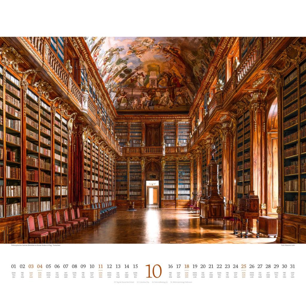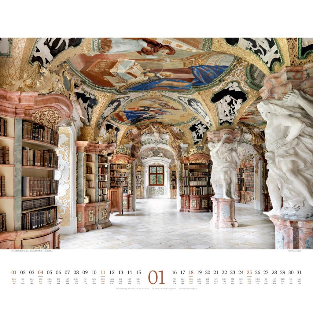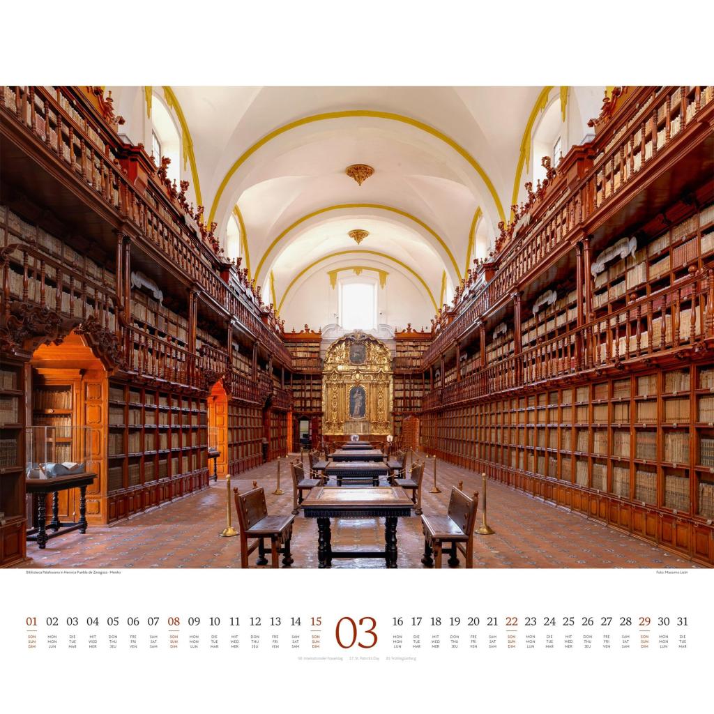 Bildgewaltiger Bibliotheken-Kalender im großen Querformat (54x48 cm) | Eindrucksvolle Architektur von Büchereien