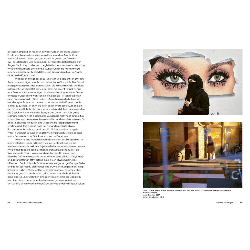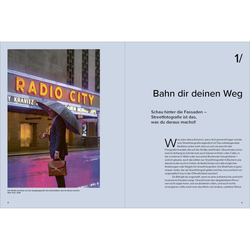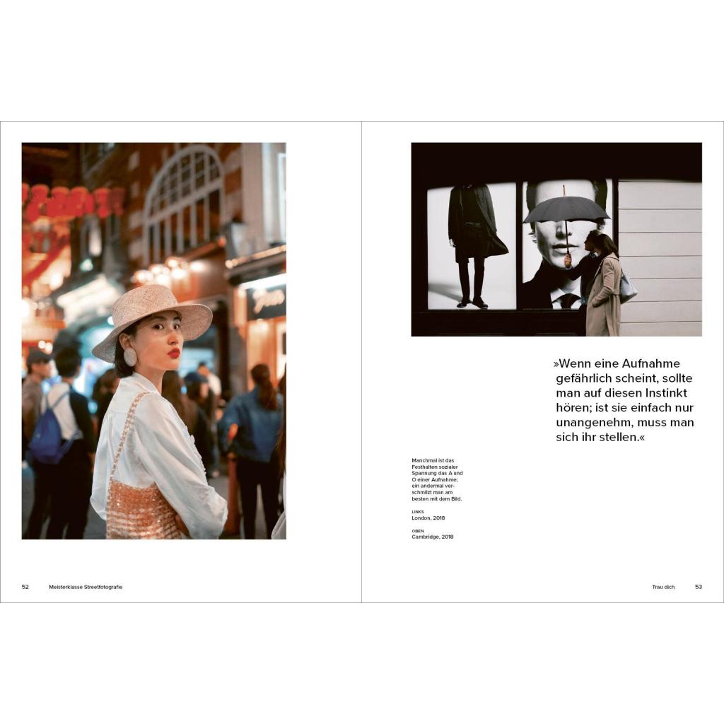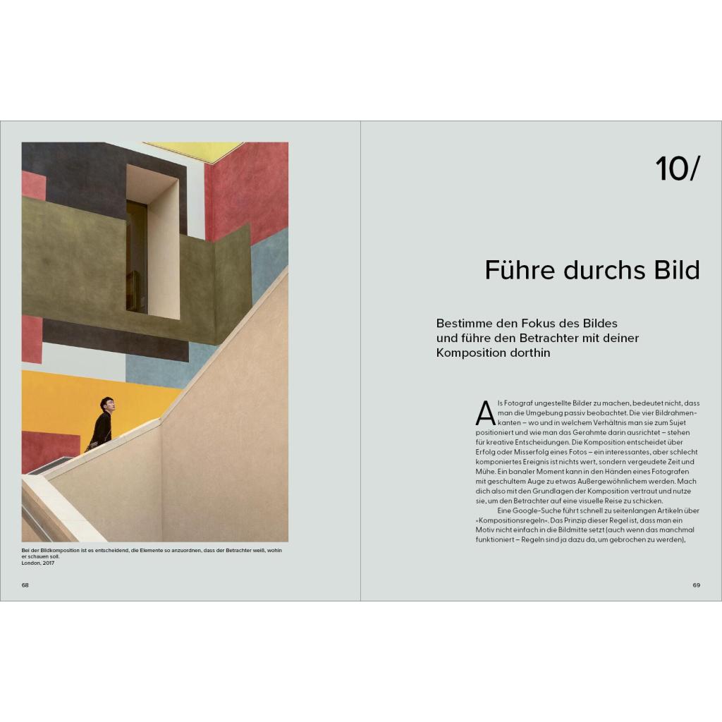Ein Meisterklasse-Kurs mit dem Experten In 20 kurzen Kapiteln gibt der britische Streetfotografie-Star Craig Whitehead exklusive Einblicke in seine Arbeitsweise. Er verrät Tipps und Tricks, mit denen auch Ungeübte schnell zu eindrucksvollen Ergebnissen kommen können. Nötig ist eigentlich nur eins: eine Kamera. Wie man diese nutzen kann für überraschende, lustige, dramatische und poetische Aufnahmen vom Alltag erläutert der Autor in knappen und prägnanten Texten. Vor allem aber mit seinen Bildern: mehr als 100 Fotografien aus den Straßen von London, New York oder Berlin und Cambridge , seiner Heimatstadt. Die Fotos zeigen Craigs unverwechselbaren Stil, seinen britischen Humor, sein Gespür für den einzigartigen Moment und inspirieren zu eigenen Fotoprojekten .