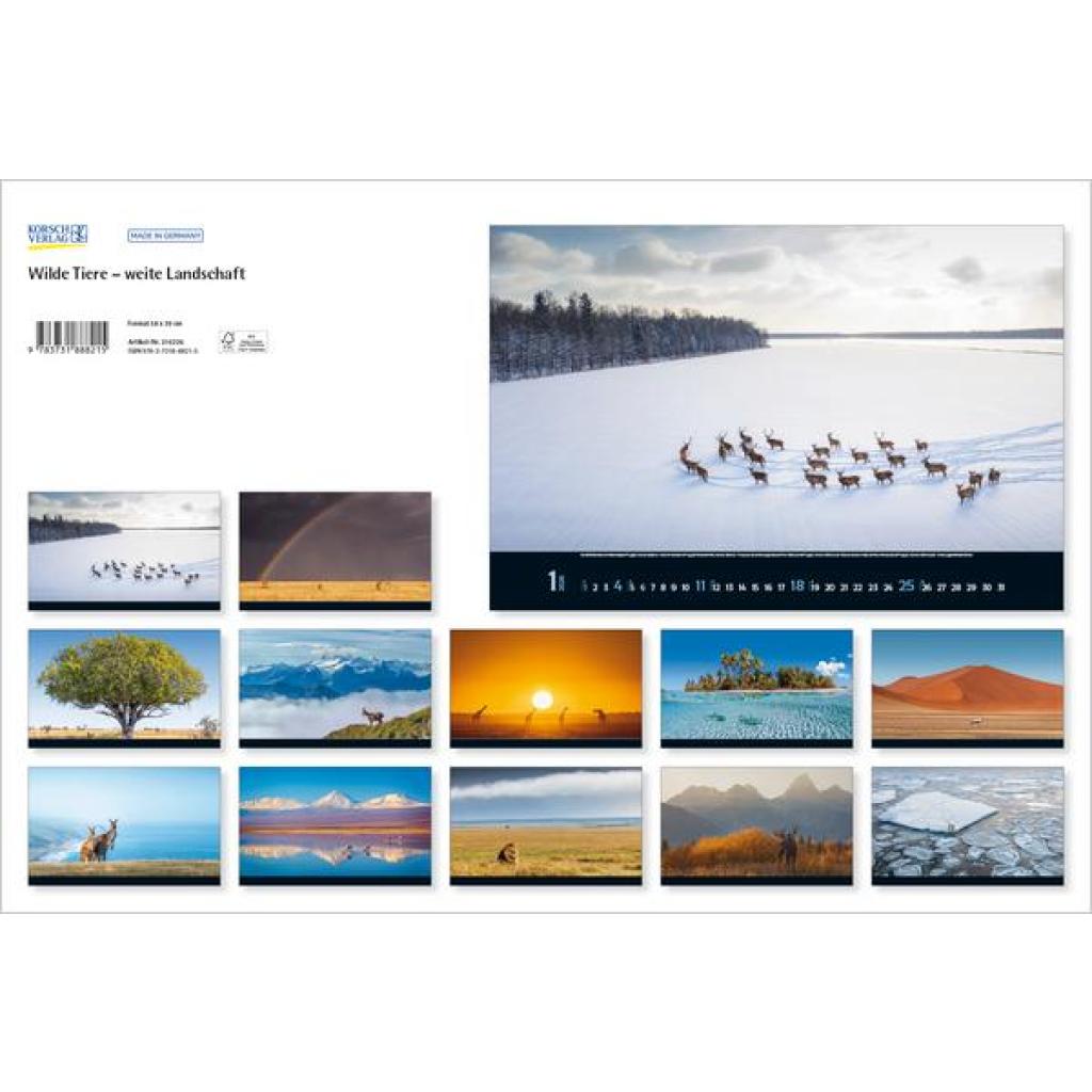 Die atemberaubenden Landschaften wirken in diesem Kalender besonders eindrucksvoll, da die Tiere nur einen kleineren Teil des Motivs einnehmen. Zwölf beeindruckende Fotografien von weiten Landschaften und wilden Tieren schaffen einen einzigartigen Wandschmuck. Hervorragende Druckqualität bis ins Detail Neutrales Kalendarium für alle Länder FSC zertifiziertes Papier aus verantwortungsvollen Quellen Korsch Wandkalender Entdecke die vielseitigen Einsatzmöglichkeiten für unseren Kalender, sei es im Büro, in der Küche, im Wohn- oder Schlafzimmer. Dieser Wandkalender ist nicht nur ein optisches Highlight, sondern auch ein praktischer Begleiter durch das Jahr. Er begeistert mit wechselnden, einzigartigen Motiven für jede Jahreszeit. Korsch Kalender zeichnen sich durch eine herausragende Druckqualität, eine stabile Spiralbindung und hochwertiges Papier aus. Dies gewährleistet ein müheloses Umblättern der Seiten sowie eine stilvolle Dekoration deiner Räume. Wähle aus verschiedenen Formaten unserer Poster-Kalender aus, um das passende Deko-Element für deine Wand zu finden!