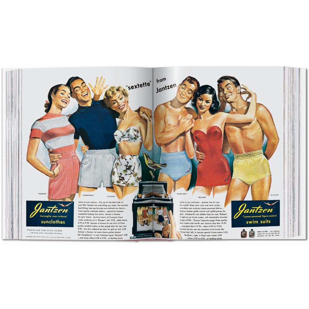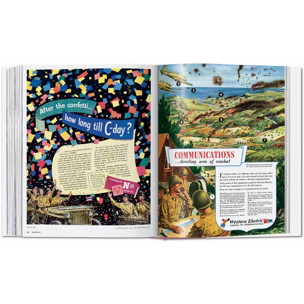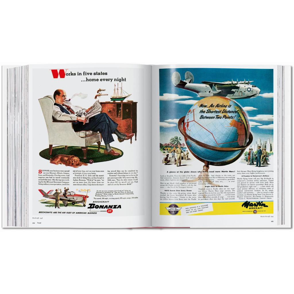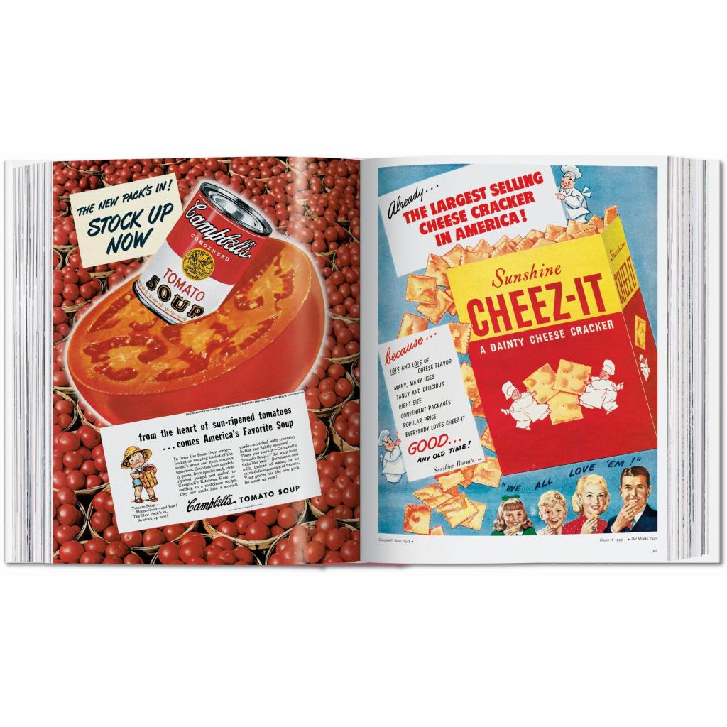 Zu Beginn des Jahrzehnts traten die USA in den Krieg ein. Patriotismus wurde folglich zum festen Bestandteil des Alltags und spiegelte sich somit auch in der Werbung wider. Als das Land 1945 siegreich aus den düsteren Jahren des Zweiten Weltkriegs heraustrat, ging der eintretende Wirtschaftsboom mit einem drastischen Anstieg der Lebensqualität, dem Konsum bis hin zum Exzess einher. Der Kriegsausgang löste bei den Amerikanern einen beispiellosen Nationalstolz und Wohlstand aus, und nirgendwo zeigte sich diese neue Welle des Fortschritts- und Konsumdenkens besser als in der zeitgenössischen Reklame. In der zweiten Hälfte des Jahrzehnts schnellte die Kaufkraft dank freier Stellen und steigender Löhne sprunghaft nach oben. Die neue G.I. Bill ermöglichte heimkehrenden Kriegsveteranen erstmals den Erwerb von Wohneigentum und die Menschen fanden den Glauben an den amerikanischen Traum wieder . In der Nachkriegszeit wurde der Markt bis in die äußersten Winkel der Gesellschaft von Produkten und Dienstleistungen für jeden Zweck und zu jedem Anlass überschwemmt. Alles - von Unterhaltung über Reisen und Autos, Alkohol und Tabak, Mode und Kosmetik bis hin zu Lebensmitteln und Getränken - war sowohl gefragt als auch erschwinglich. Diese Ära öffnete dem Kaufrausch Tür und Tor, während Werbetreibende versuchten, die Bedürfnisse einer Bevölkerung zu stillen, die sich von Jahren der Rationierung erholte . Diese faszinierende Sammlung, herausgegeben von Jim Heimann, taucht ein in die quirlige, muntere und beschwingte Epoche des Lebens und Werbens im Amerika der 1940er Jahre .