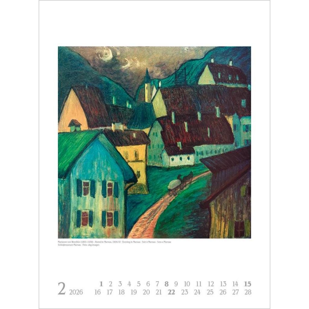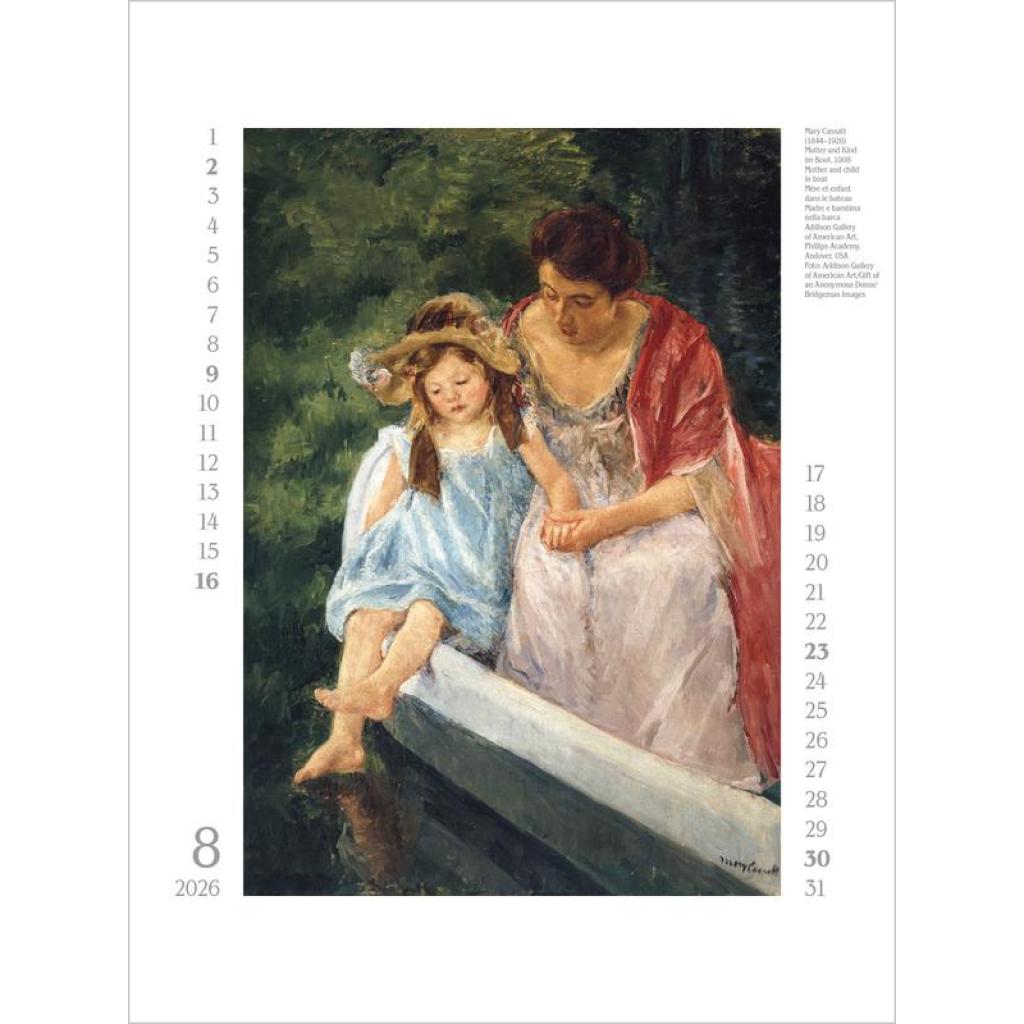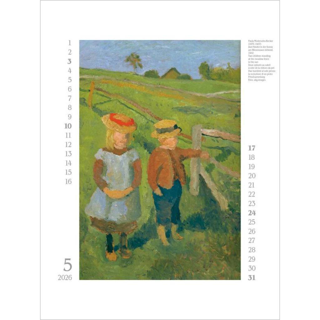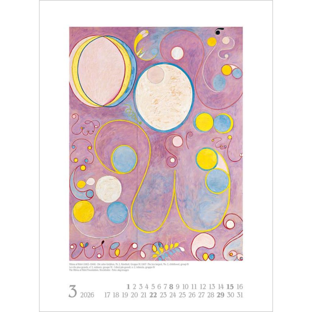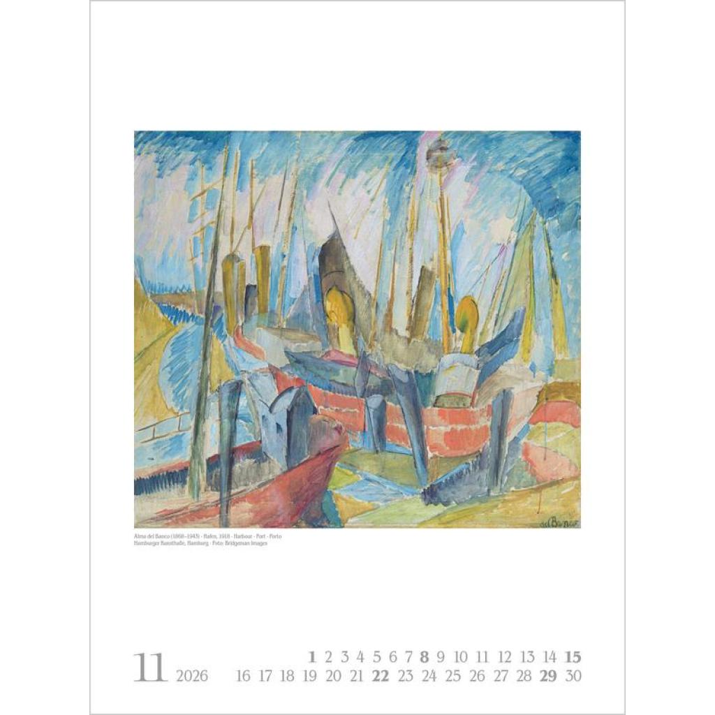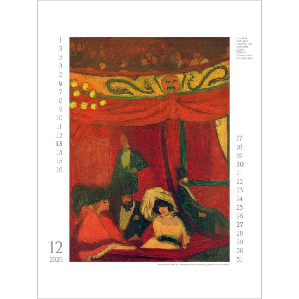 Vorhang auf für weibliche Kunst! Im 19. und 20. Jahrhundert künstlerisch schaffende Frauen standen lange im Schattenihrer männlichen Kollegen und werden nun zunehmend sichtbar und gewürdigt. Und so treten in diesem Kalender zwölf große Malerinnen auf - von der Impressionistin Berthe Morisot über Gabriele Münter, die in Deutschland bekannteste Vertreterin des Expressionismus, bis hin zu Hilma af Klint, die als Pionierin für abstrakte Malerei gilt.Ein Ausschnitt nur aus der weiblichen Welt der Kunst -und eine Wunderwelt voller Fantasie und Farbenpracht. Produkthighlights Kunstkalender groß im Hochformat Hervorragende Druckqualität bis ins Detail; Mit speziellem Golddruck! Neutrales Kalendarium für alle Länder FSC zertifiziertes Papier aus verantwortungsvollen Quellen Schickes passepartout Design für einen wertigen Anblick Ihres Wandkalenders Korsch Wandkalender Entdecke die vielseitigen Einsatzmöglichkeiten für unseren Kalender, sei es im Büro, in der Küche, im Wohn- oder Schlafzimmer. Dieser Wandkalender ist nicht nur ein optisches Highlight, sondern auch ein praktischer Begleiter durch das Jahr. Er begeistert mit wechselnden, einzigartigen Motiven für jede Jahreszeit. Korsch Kalender zeichnen sich durch eine herausragende Druckqualität, eine stabile Spiralbindung und hochwertiges Papier aus. Dies gewährleistet ein müheloses Umblättern der Seiten sowie eine stilvolle Dekoration deiner Räume. Wähle aus verschiedenen Formaten unserer Poster-Kalender aus, um das passende Deko-Element für deine Wand zu finden!