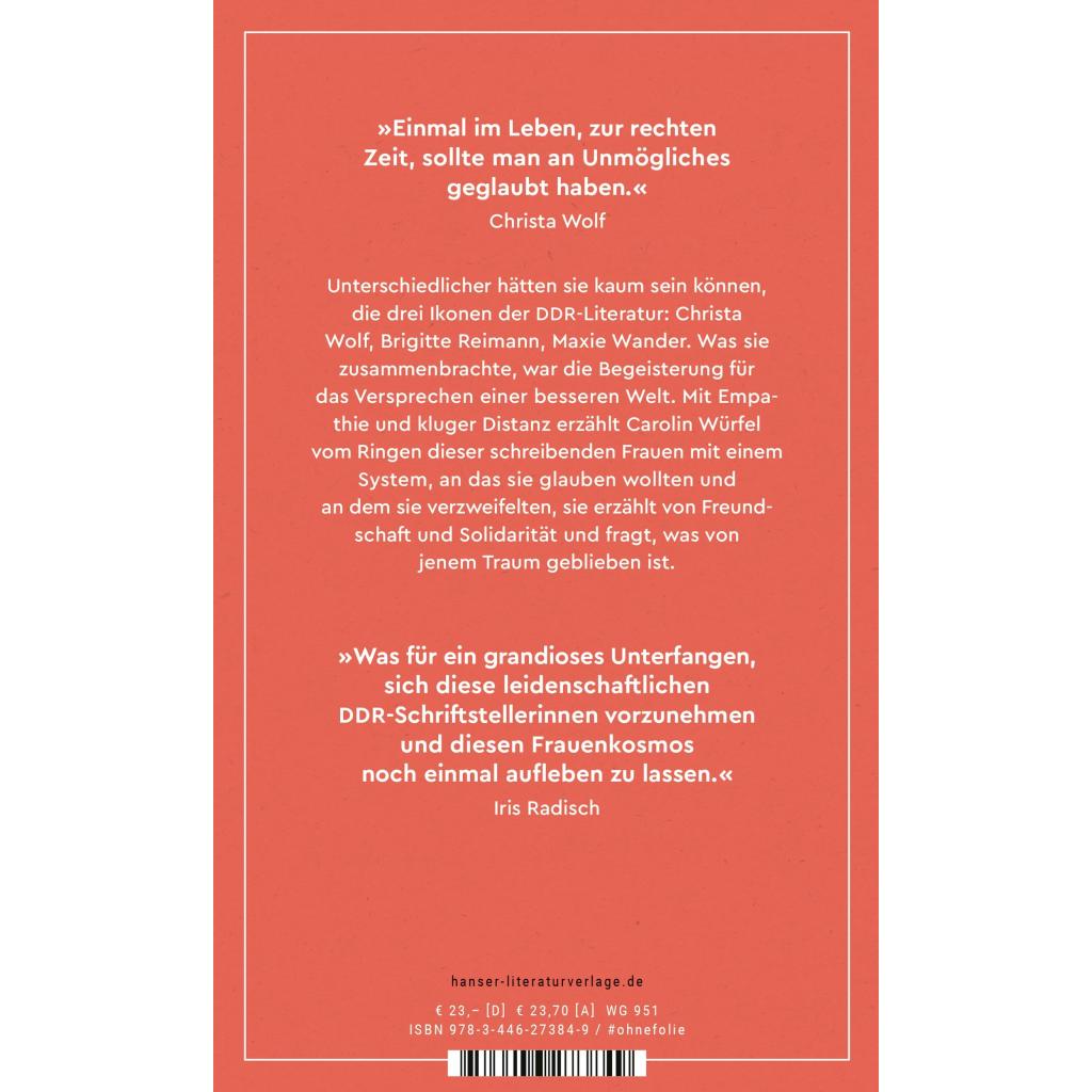 | Keyword: | Ankommen im Alltag; Anna Seghers; Antifaschismus; Bitterfelder Weg; Brigitte Reimann; Burg; Christs Wolf; DDR-Literatur; Das siebte Kreuz; Der geteilte Himmel; Die Frau am Pranger; Dirk Oschmann; Erste 20 Jahre DDR; Faschismus; Freundinnen; Freundschaft; Guten Morgen Du Schöne; Halle; Katja Hoyer; Kinderlähmung; Kommunismus; Konzentrationslager; Künstlerhaus; Leipzig; Liebe; Maxie Wander; Moskau; Nachdenken über Christa T.; Nationalsozialismus; Opfer bringen; Partei; Petzow; Sarah Kirsch; Schriftstellerverband; Sozialismus; Stasi; Traum vom neuen Menschen; Treue; Versprechen; Weibliche Solidarität; Wien |