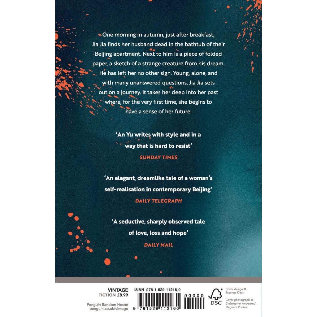 The dreamlike story of a young woman in contemporary Beijing forging a different life for herself, from one of our brightest new literary stars. One morning in autumn, just after breakfast, Jia Jia finds her husband dead in the bathtub of their Beijing apartment. Next to him is a piece of folded paper, a sketch of a strange creature from his dream. He has left her no other sign. Young, alone, and with many unanswered questions, Jia Jia sets out on a journey. It takes her deep into her past where, for the very first time, she begins to have a sense of her future. 'Startlingly original... A portrait of alienated young womanhood as it is set free' Guardian 'Rich and wild...it gets under your skin' Observer 'An Yu writes with style and in a way that is hard to resist' Sunday Times 'A seductive, sharply observed tale of love, loss and hope' Daily Mail