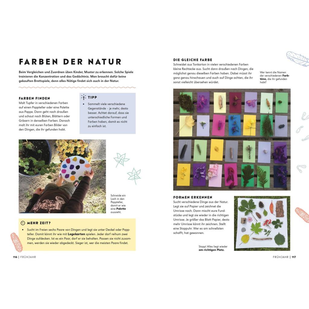 Kreative Beschäftigungen im Freien für die ganze Familie. Spielideen, Bastelanleitungen und Mikroabenteuer für jede Jahreszeit