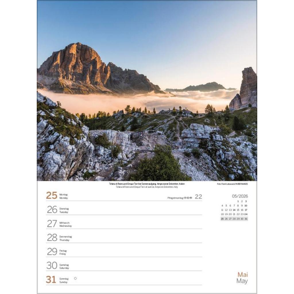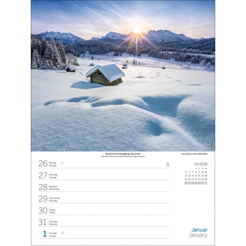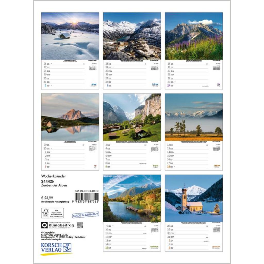 Produktmerkmale ¿ Format: 24 x 32 cm; Wochenkalender mit 53 einzigartigen Bildern ¿ Kalendarium auf Deutsch und Englisch mit hervorgehobenen Sonn- und Feiertagen für D, A und CH ¿ Gedruckt auf umweltfreundlichem FSC Papier Genießen Sie 53 spektakuläre Aufnahmen der schönsten Bergpanoramen, Seen und Landschaften in den faszinierenden europäischen Alpen. Klimaneutral hergestellt auf nachhaltig produziertem Papier.