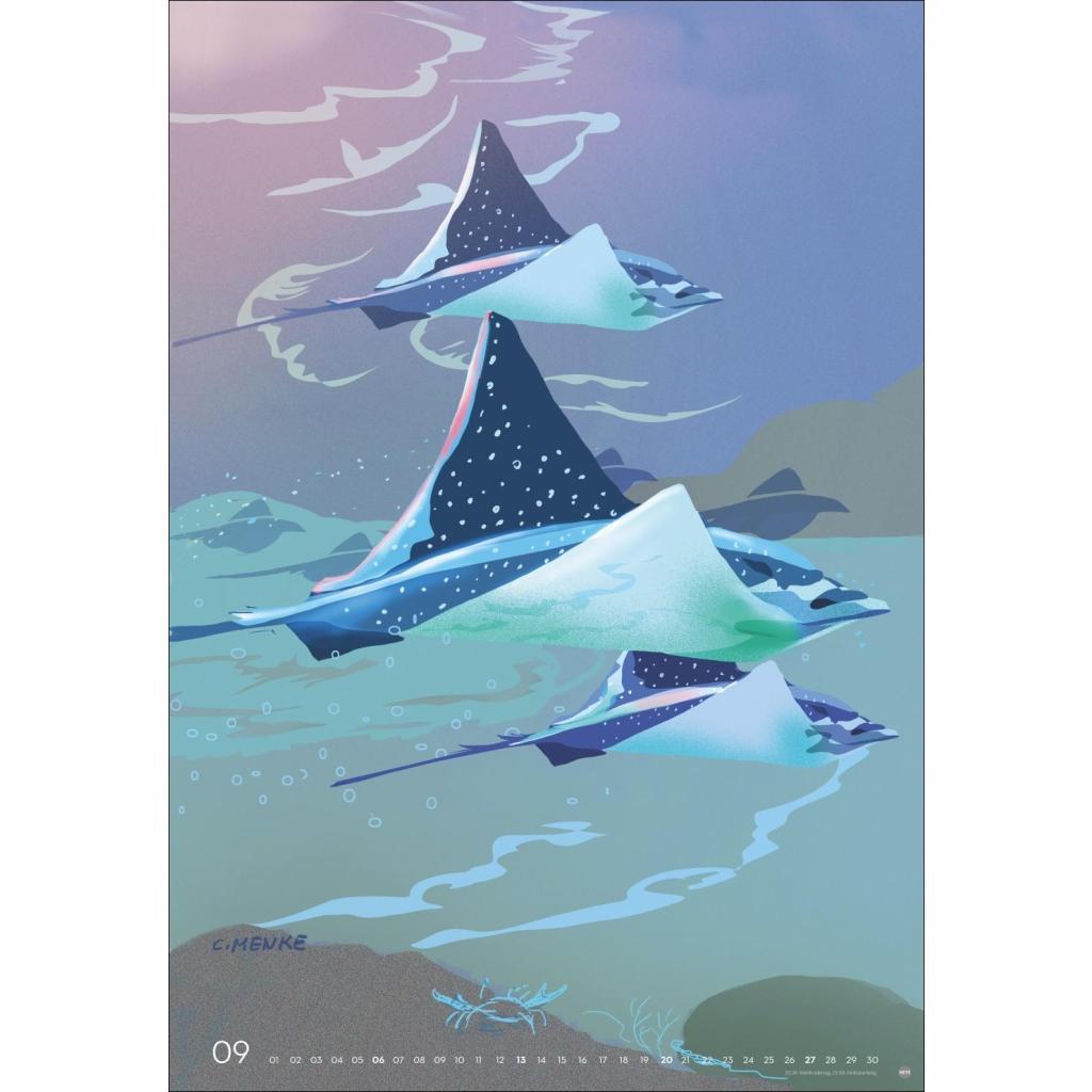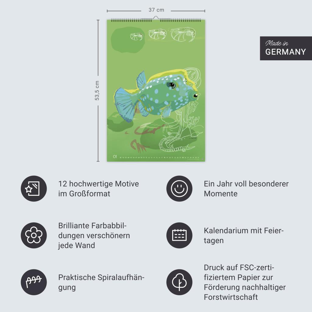 Die Stars der Unterwasserwelt, künstlerisch in Szene gesetzt von Chris Menke. Wandkalender 2026 im Großformat (37 x 53,5 cm) in bunt designter Optik