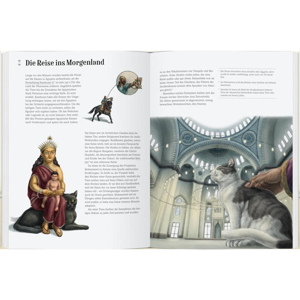 Ägyptische Gottheit oder Schiffskatze, Heldin von Märchen und Mythen oder geliebtes Haustier: Katzen sind aus unserem Leben nicht wegzudenken! Schon seit vielen Tausend Jahren haben sie in Haus, Hof und Herzen von uns Menschen ihren festen Platz. Begleiten wir die Katze bei ihrem Streifzug durch das Weltgeschehen - von den Feuerstellen unserer Steinzeit-Vorfahren bis hin zu ihrem Auftritt als millionenfach angeklickter Youtube-Star. Dieses Buch gibt ein faszinierendes Bild davon, auf welch weiten Wegen die Samtpfoten zu uns kamen - und bis heute geblieben sind! Innovative Comic-Strips ergänzen die informativen Sachtexte und bringen uns die Geschichten berühmter Schnurrbart-Protagonisten auf unterhaltsame Art und Weise näher.