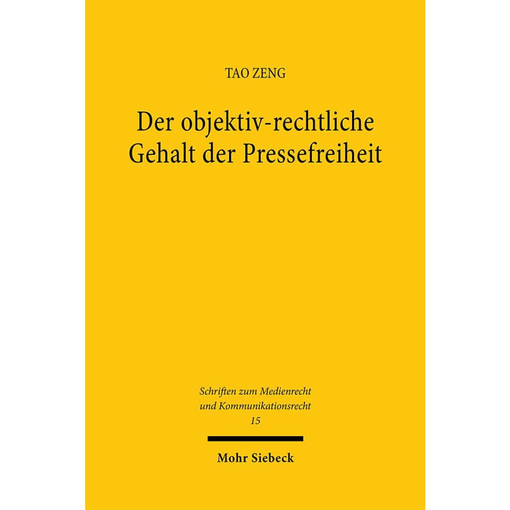 Based on an analysis of cases put to Germany's Federal Constitutional Court involving matters of press freedom, Tao Zeng proposes a fresh construction of the objective-legal content of the institute of an independent press, both with regard to its justification and the concrete consequences of this dogmatic figure.