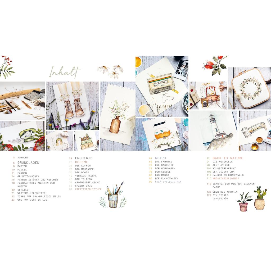 | Keyword: | Boho-Look; Boho-Opitk; Vintage; Watercolor Boho; Boho Wasserfarbe; Skandinavischer Stil; Skandi Optik; Skandi Style; Hippie Style; Hippie Optik; Aquarell Buch; Aquarell Einsteiger; Aquarell Boho |