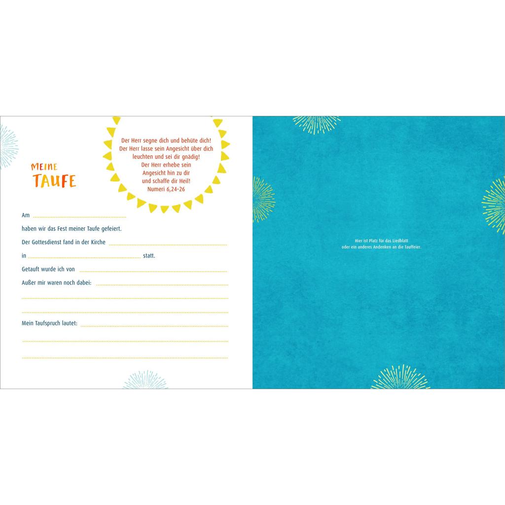 So wird der Tag zu einer unvergesslichen Erinnerung! Dieses wunderschön gestaltete Album bietet Raum für alle Erinnerungen rund um das Fest der Taufe. Neben Texten bekannter Autoren gibt es jede Menge Platz zum Eintragen und Selbstgestalten, für Fotos und andere Andenken sowie für Gedanken und Wünsche der Eltern, Taufpaten und Gäste. Es ist geschlechtsneutral gestaltet und ökumenisch einsetzbar und eignet sich nicht nur für die Babytaufe, sondern auch für die Taufe im Erstkommunionalter. Ein tolles Geschenk für Eltern, Großeltern und Paten!