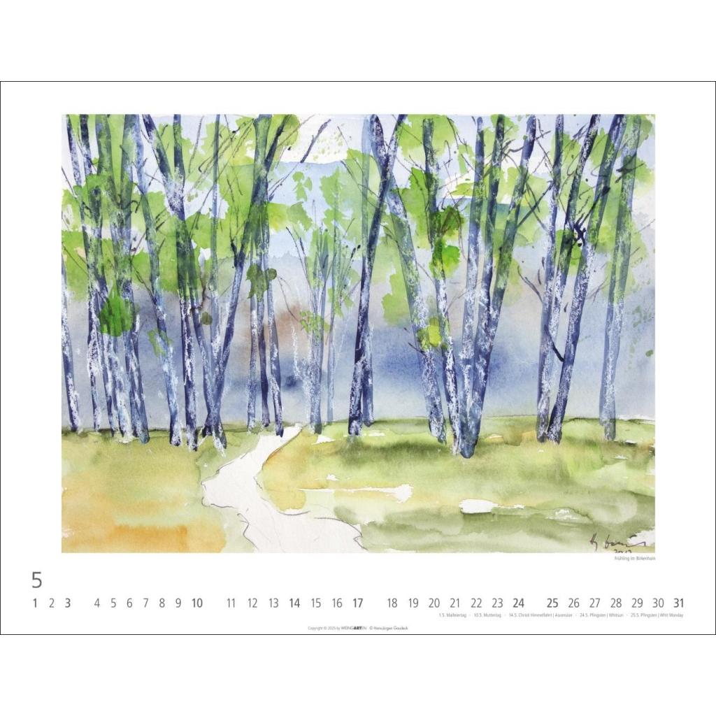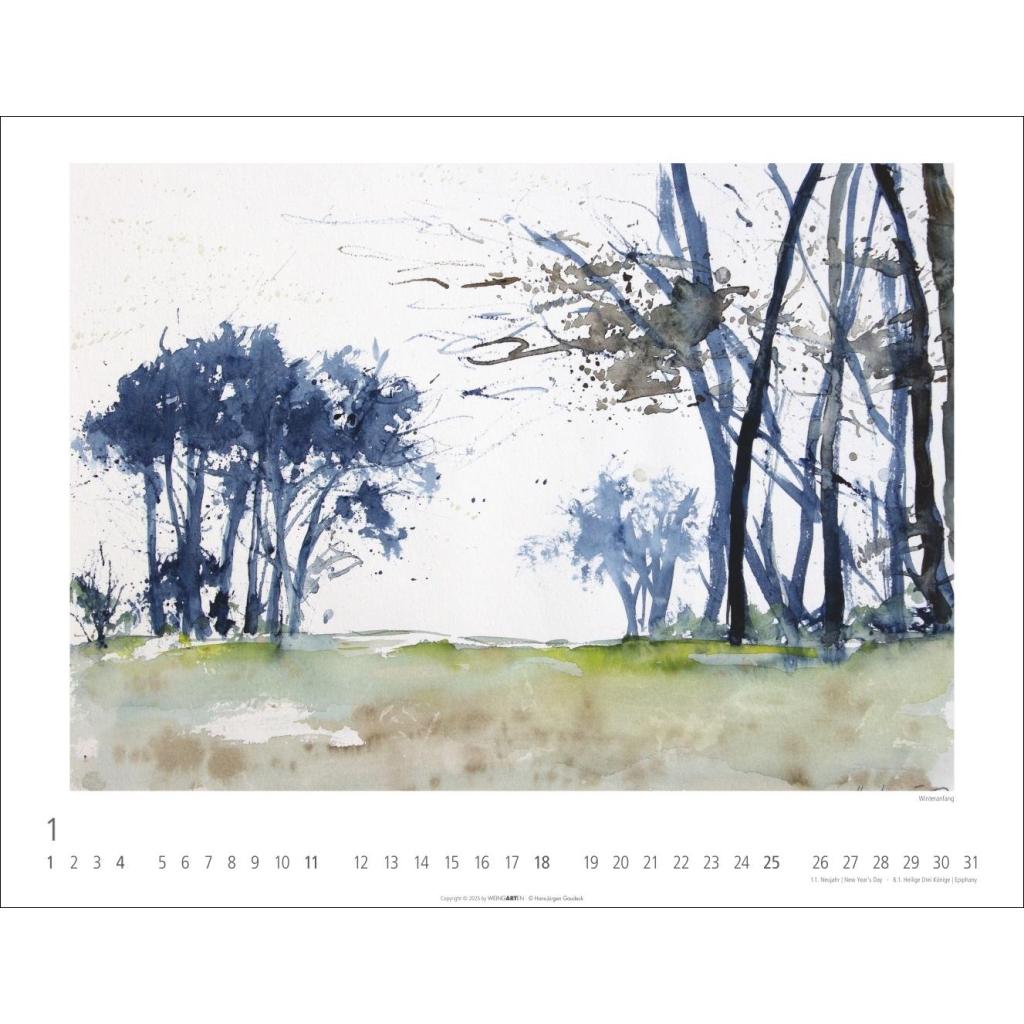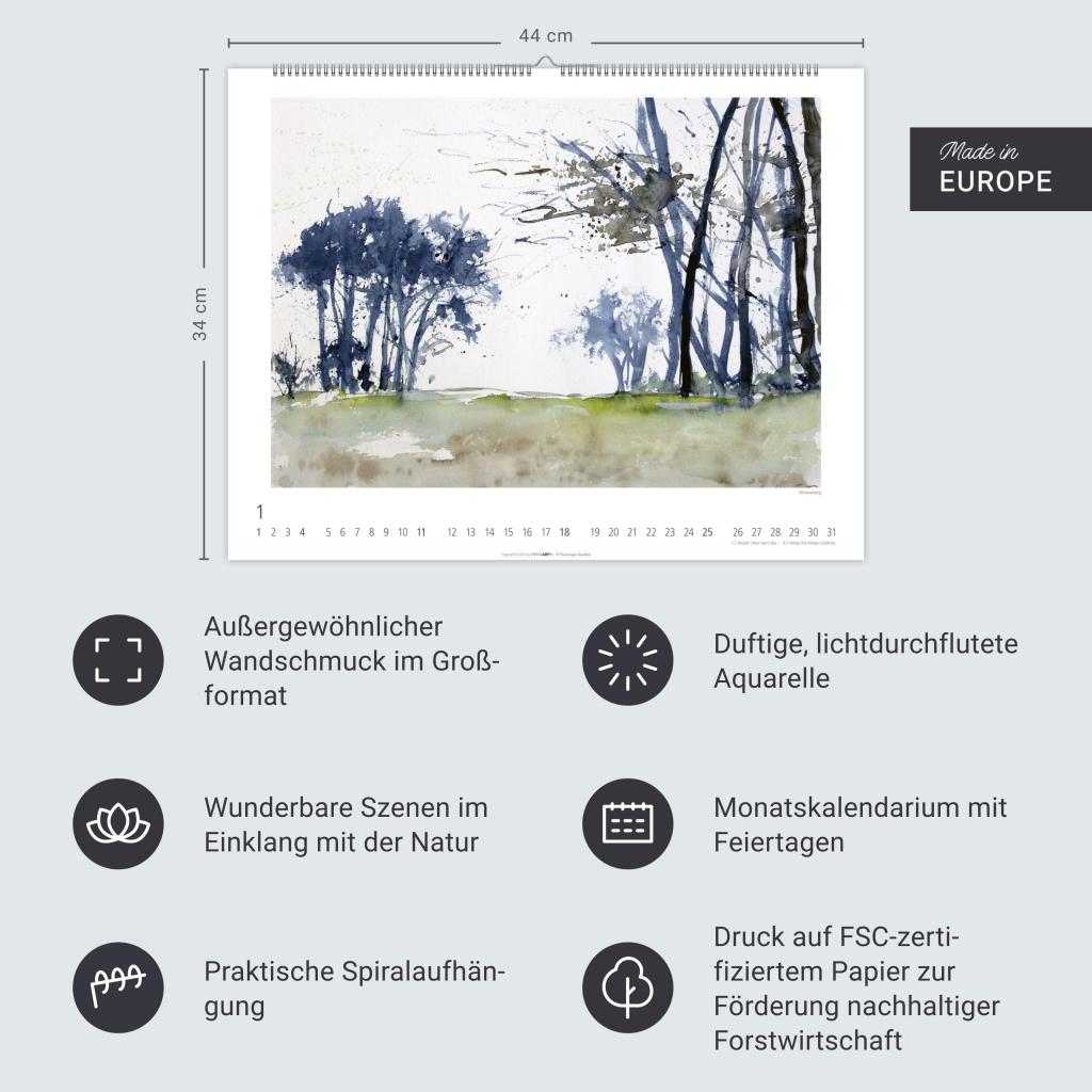 Jahres-Wandkalender 2026. Jeden Monat eintauchen in zarte Landschaftsmalereien und einmalig schöne Aquarell-Kunst